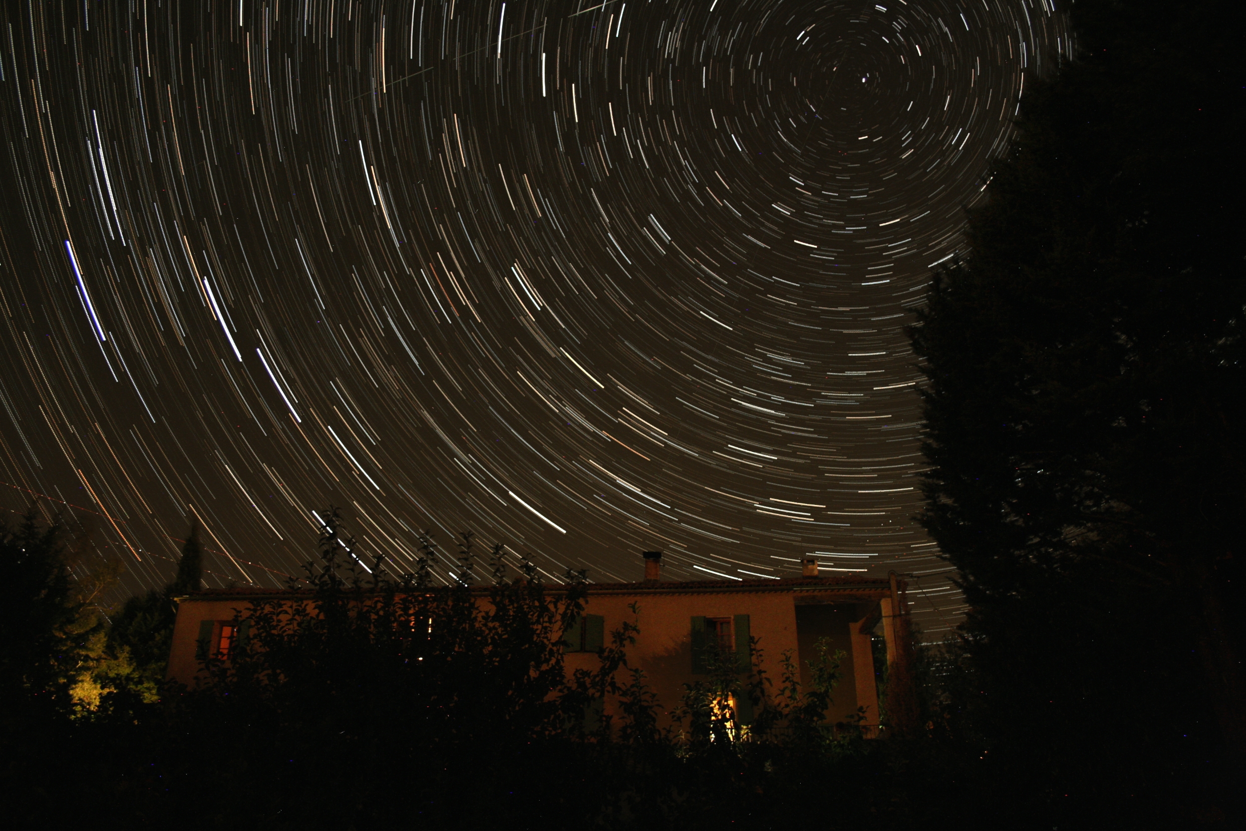 Leserbilder Astronomie: Strichspuren über einem Landhaus in der Haute-Provence