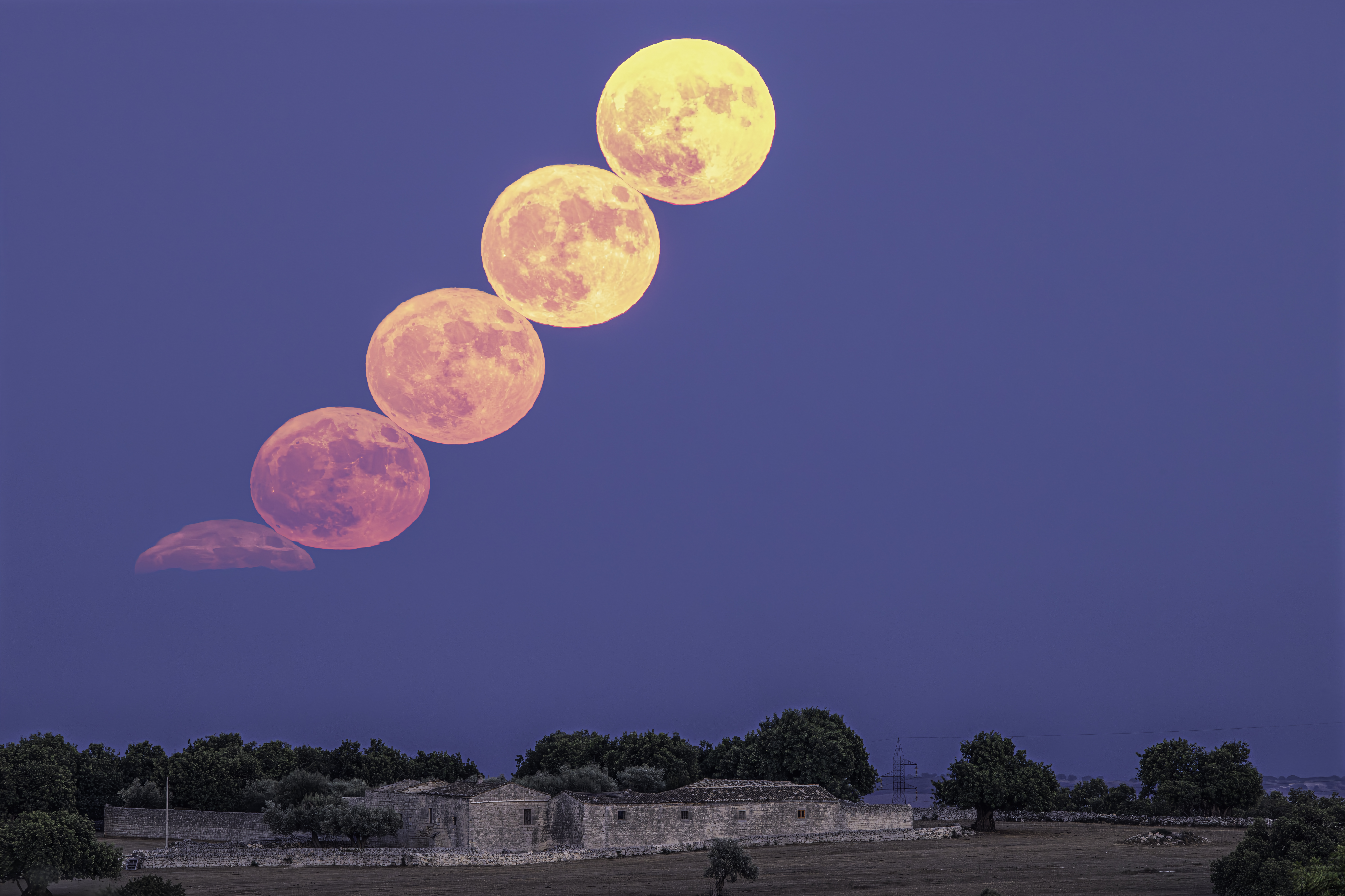 The Sturgeon Moon rising over the Hybleian Cou try in Sicily