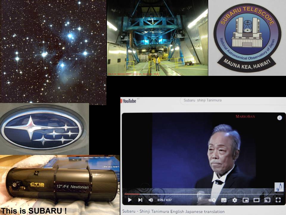 6. SUBARU: das einzige mir bekannte Lied über die Plejaden stammt, wie könnte es anders sein, aus Japan und ist auf Youtube abspielbar.Zwar wird es in japanischer Sprache gesungen,es gibt aber englische Übersetzung dazu. Der kürzlich verstorbene Shinji Tanimura war auch Komponist dieses poetischen Liedes, in dem der Name Subaru als Synonym für alle Sterne am Nachthimmel steht. Viel Vergnügen beim Anhören!