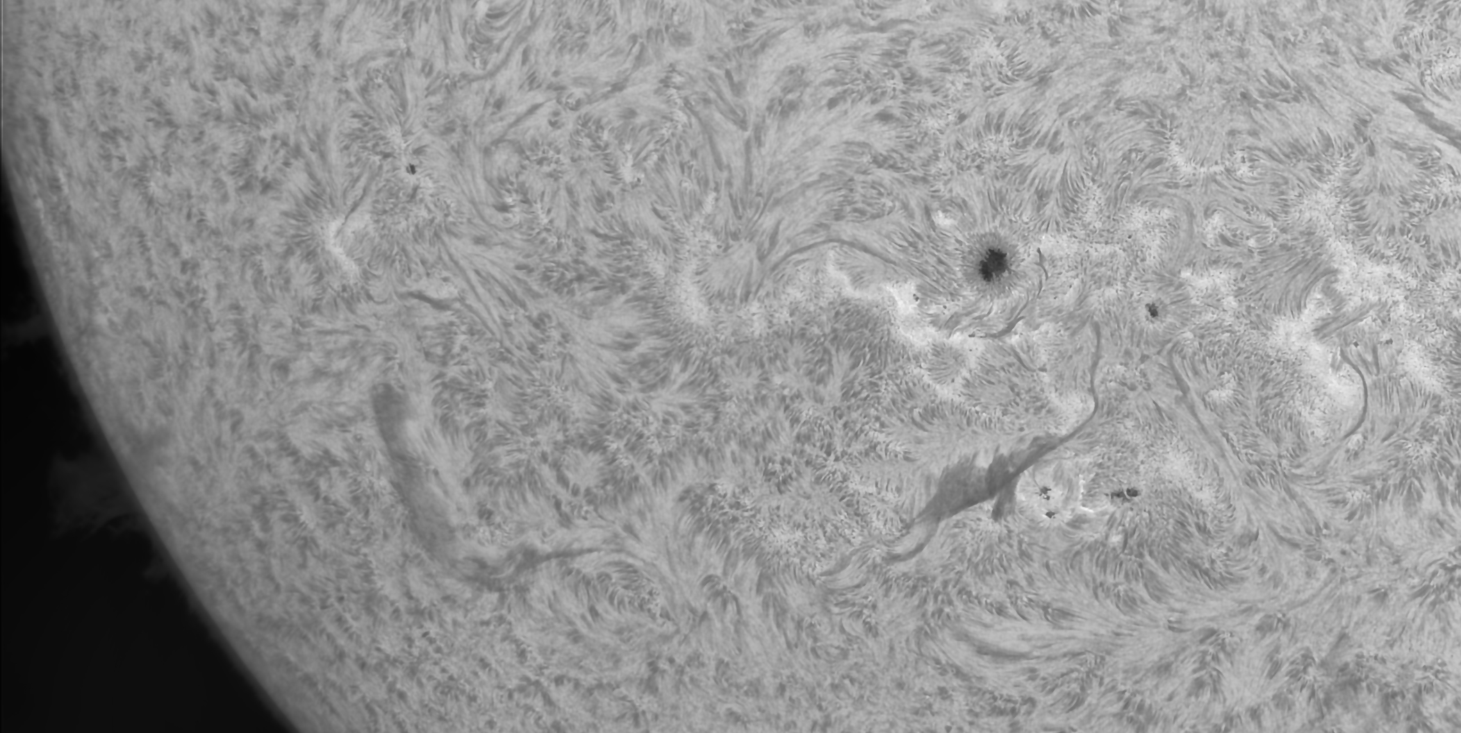 Anhaltend schöne Strukturen in der Chromosphäre, Protuberanzen, Filamente und natürlich zahlreiche Fleckengruppen.