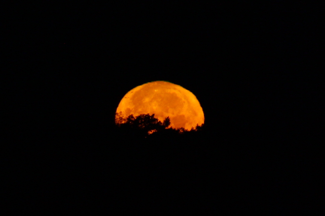 Supermond, Untergang in aller Stille in der der Früh als Vorbereitung für den abendlichen Aufstieg.