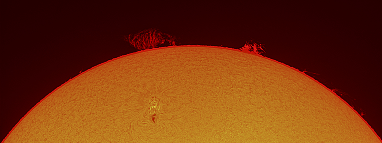 Herrlich die Krause aus Protuberanzen, welche die Fleckengruppe 3665 begleiteten. Die Fleckengruppe selbst war durch extrem helle Fackeln verbunden, so dass der Autor minütlich ein Flare erwartete.