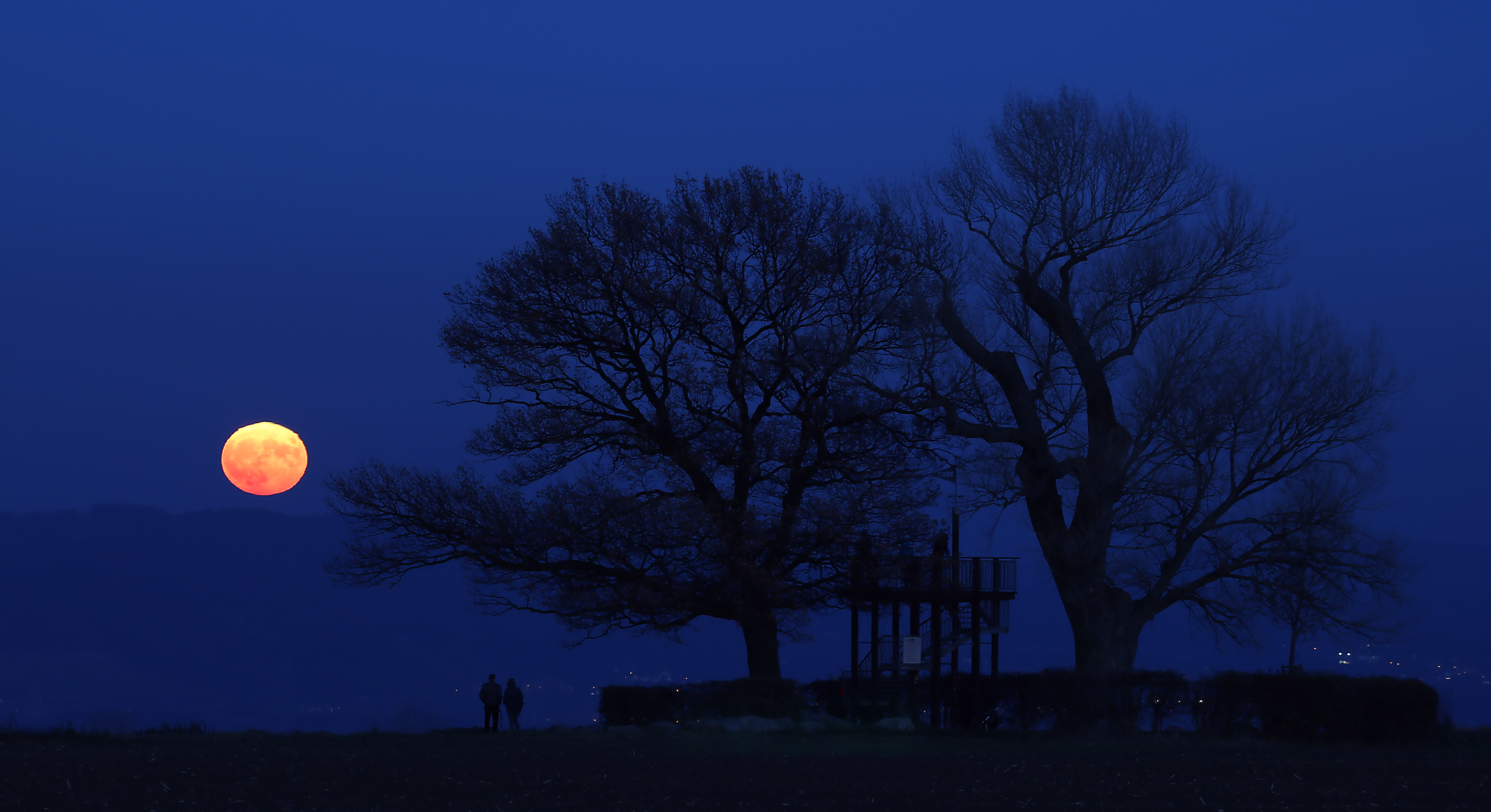 Leserbilder Astronomie: Supervollmond an der Babisnauer Pappel bei Dresden