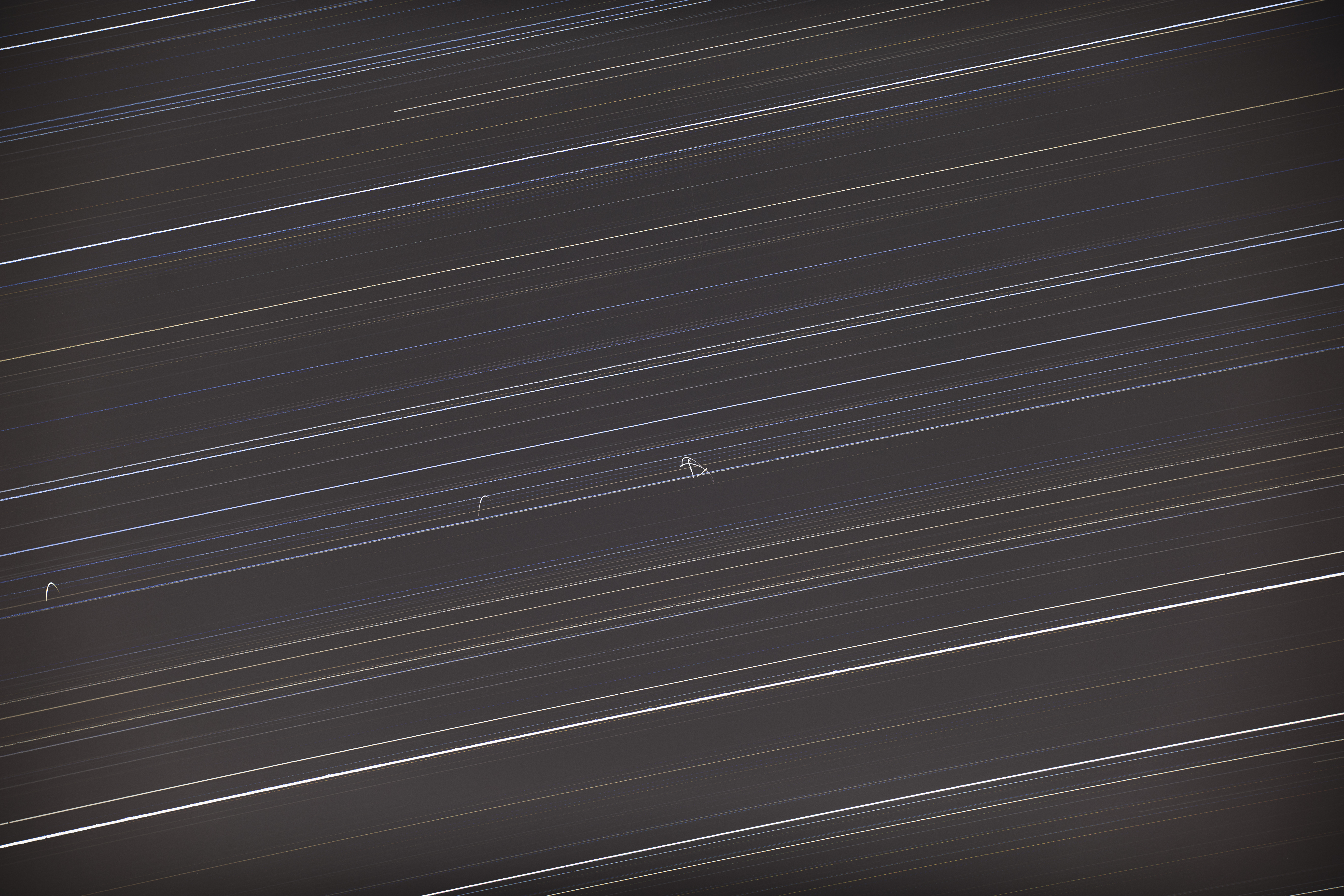 Geostationäre Satelliten befinden sich in einer Umlaufbahn über dem Äquator, der sie scheinbar über dem gleichen Ort auf der Erde stehen lässt. Grund dafür ist die bewusst gewählte Entfernung von rund 36000 Kilometern, in welcher der Satellit genau so lange für einen Erdumlauf benötigt wie die Erde unter ihm für eine Drehung um die eigene Achse. Ganz genau halten die Satelliten ihre Position jedoch nicht, sondern vollziehen elegante Figuren um einen idealen Mittelpunkt, die fotografisch festgehalten werden können. Diese summierte Aufnahme von etwa elfeinhalb Stunden Belichtungszeit (!) zeigt den Tanz des Astra Cluster (Astra 1L, 1M, 1N und 1KR) sowie links davon Arabsat-5C und Eutelsat 21B.