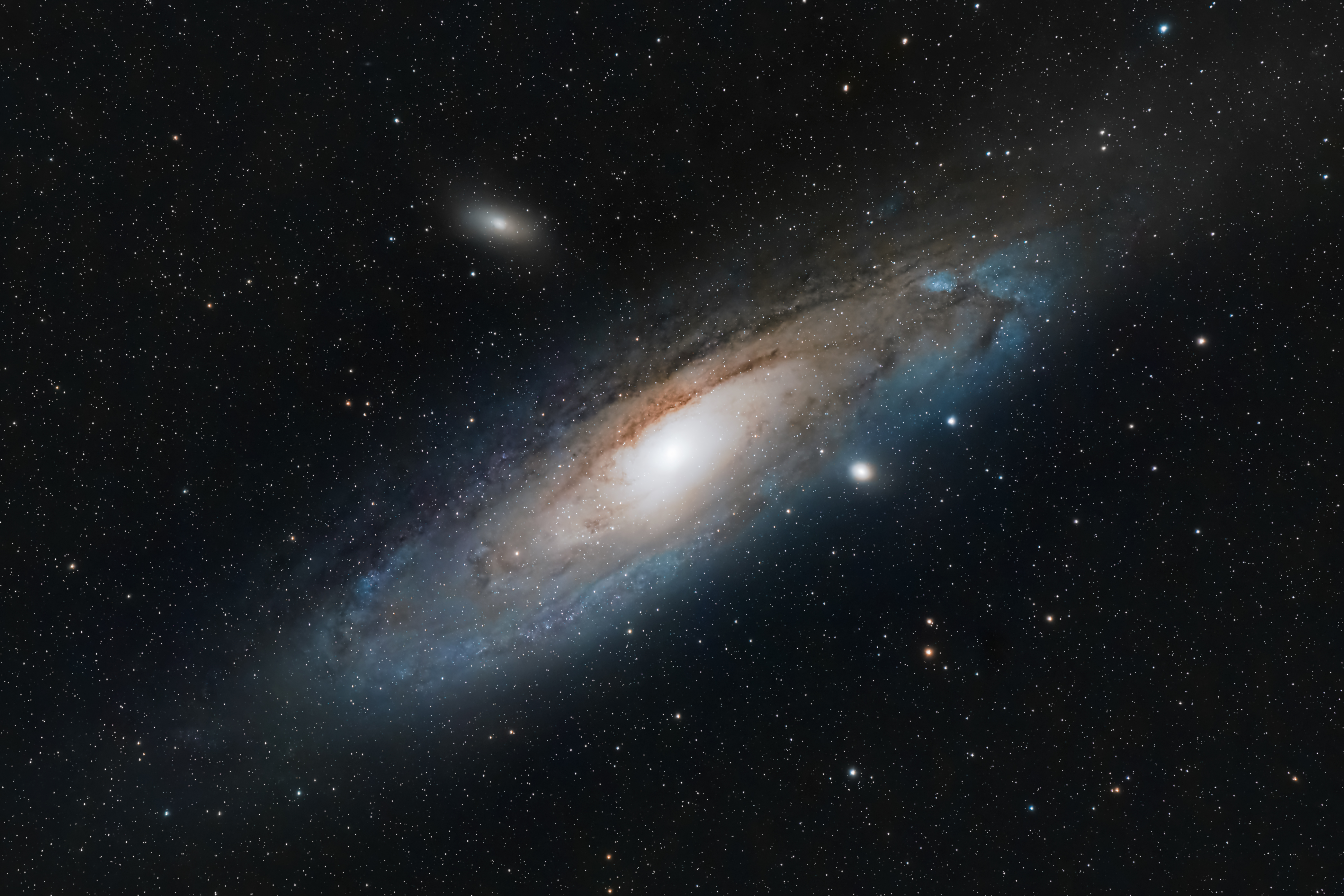 The Andromeda Galaxy (M31) made with a reflex camera and a star tracker. Andromeda is a large barred spiral galaxy that is about 2.538 million light years from Earth in the direction of the constellation of Andromeda, from which it takes its name. It is the closest large galaxy to ours; it is also visible to the naked eye and is among the most distant objects visible without the aid of instruments.