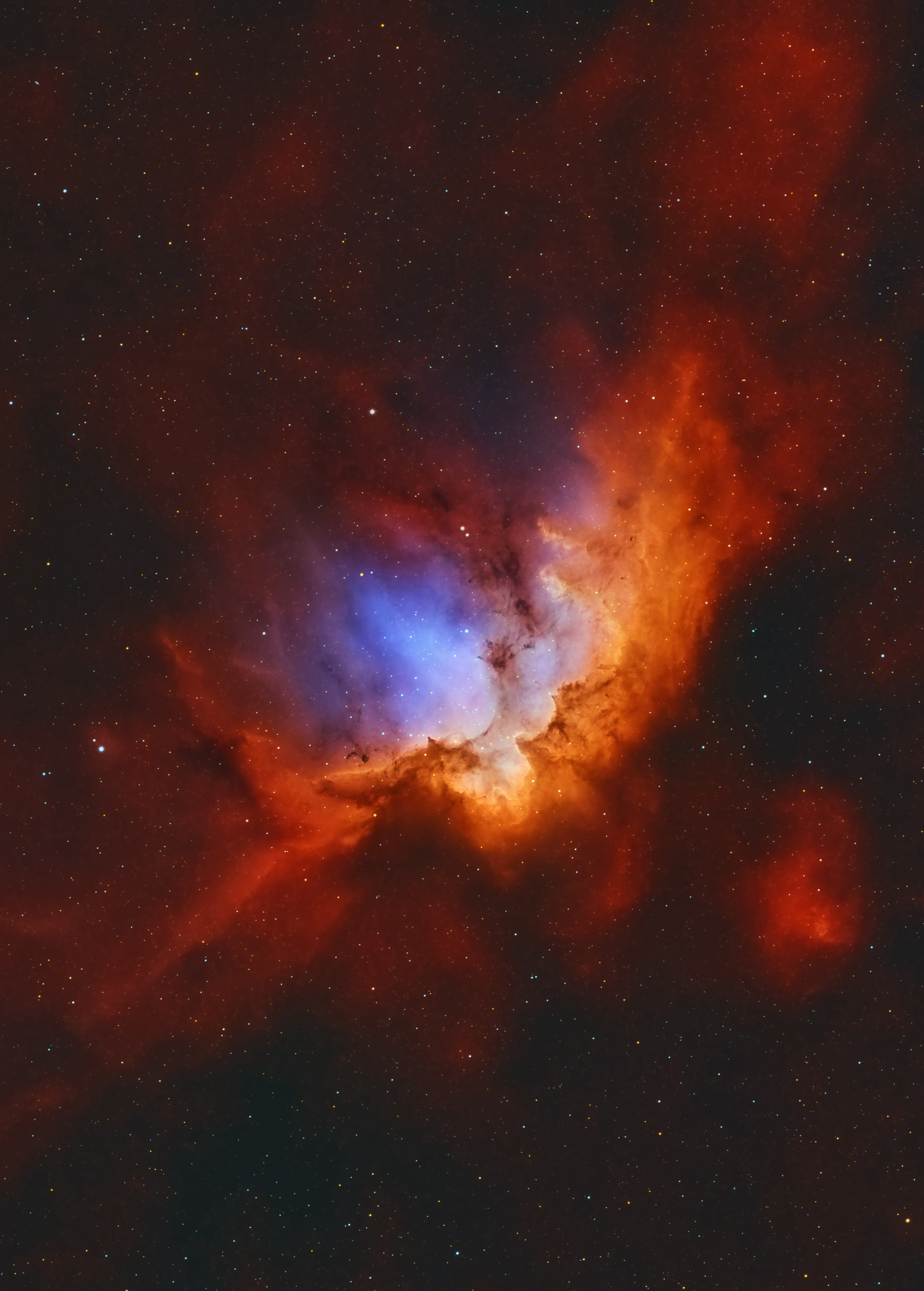 diese Aufnahme ist mein erstes SHO-Bild. Aufgenommen im letzten Herbst 2021 über drei klare Nächte. Diese Variante vom Wizard-Nebel wurde von mir mit der Tone-Mapping-Methode erstellt. Der dadurch gewonnene Eindruck hat mich auf den Titel "Crazy Magician" (Verrückter Magier) gebracht. Viel Spaß beim Anschauen und ich hoffe, dass euch NGC 7380 gefällt.