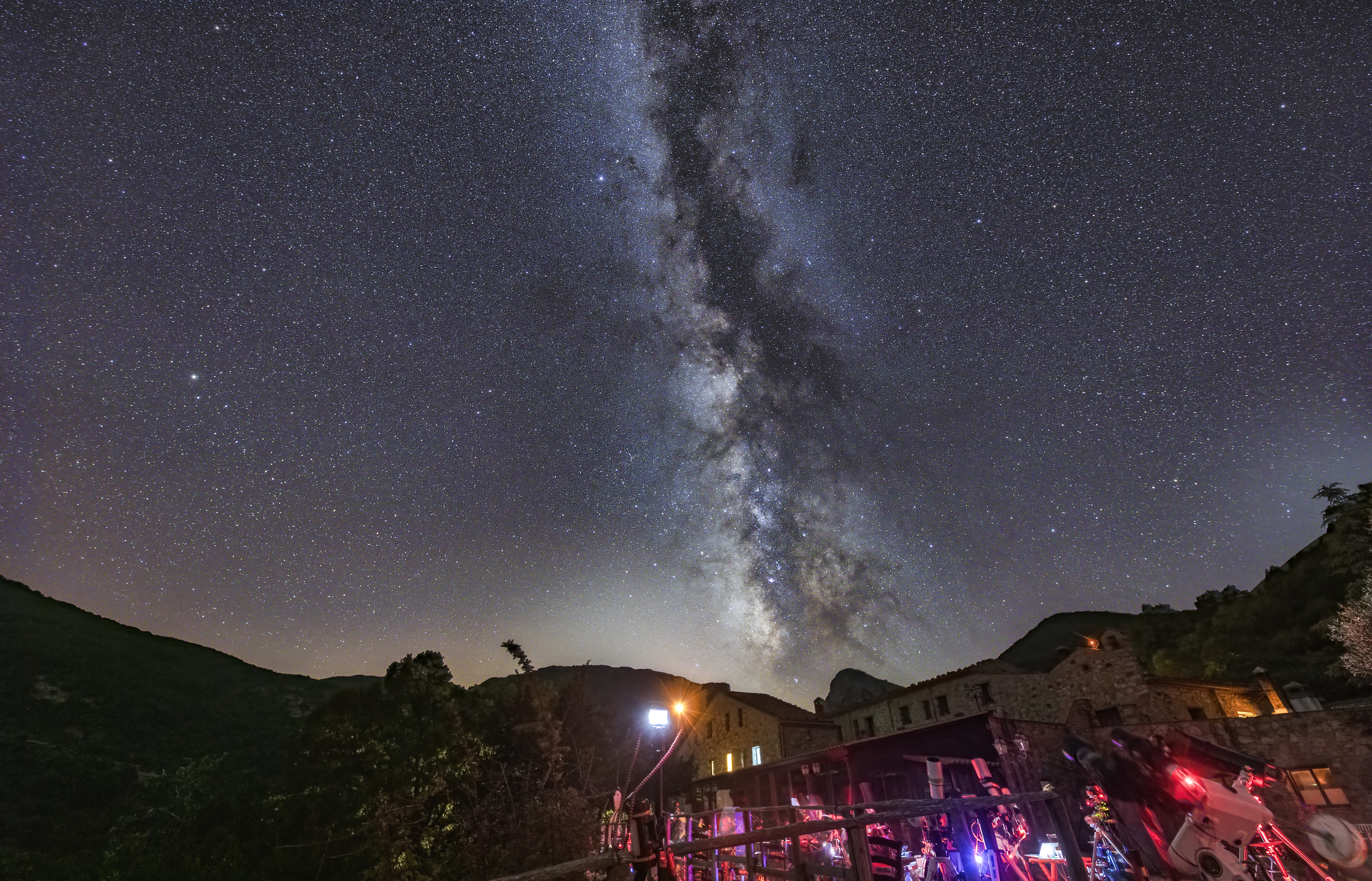 The Milky Way over the telescopes during the 2022 Madonie Mountains star party.