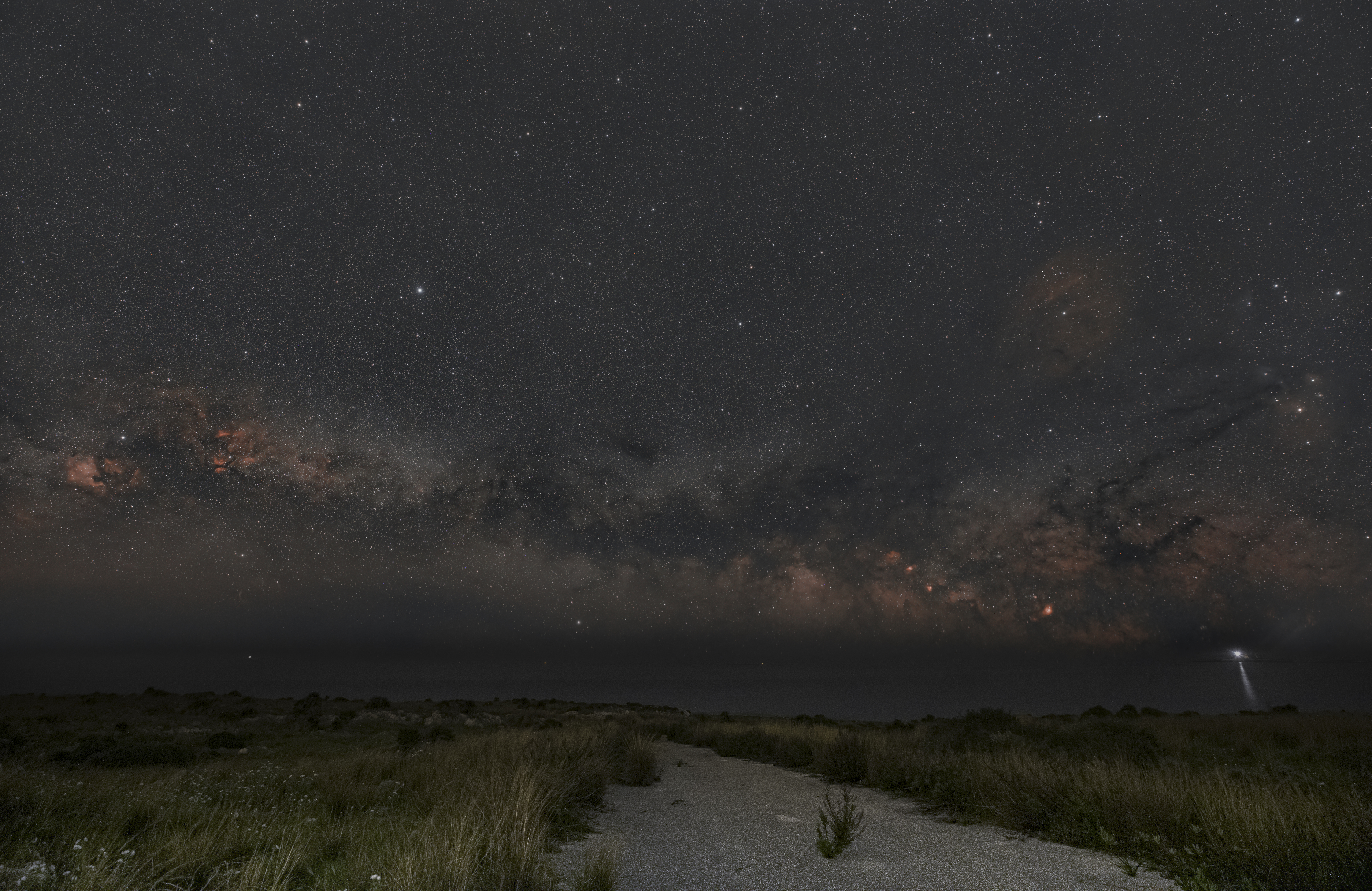 The summer milky way rises over the Ionian Sea.