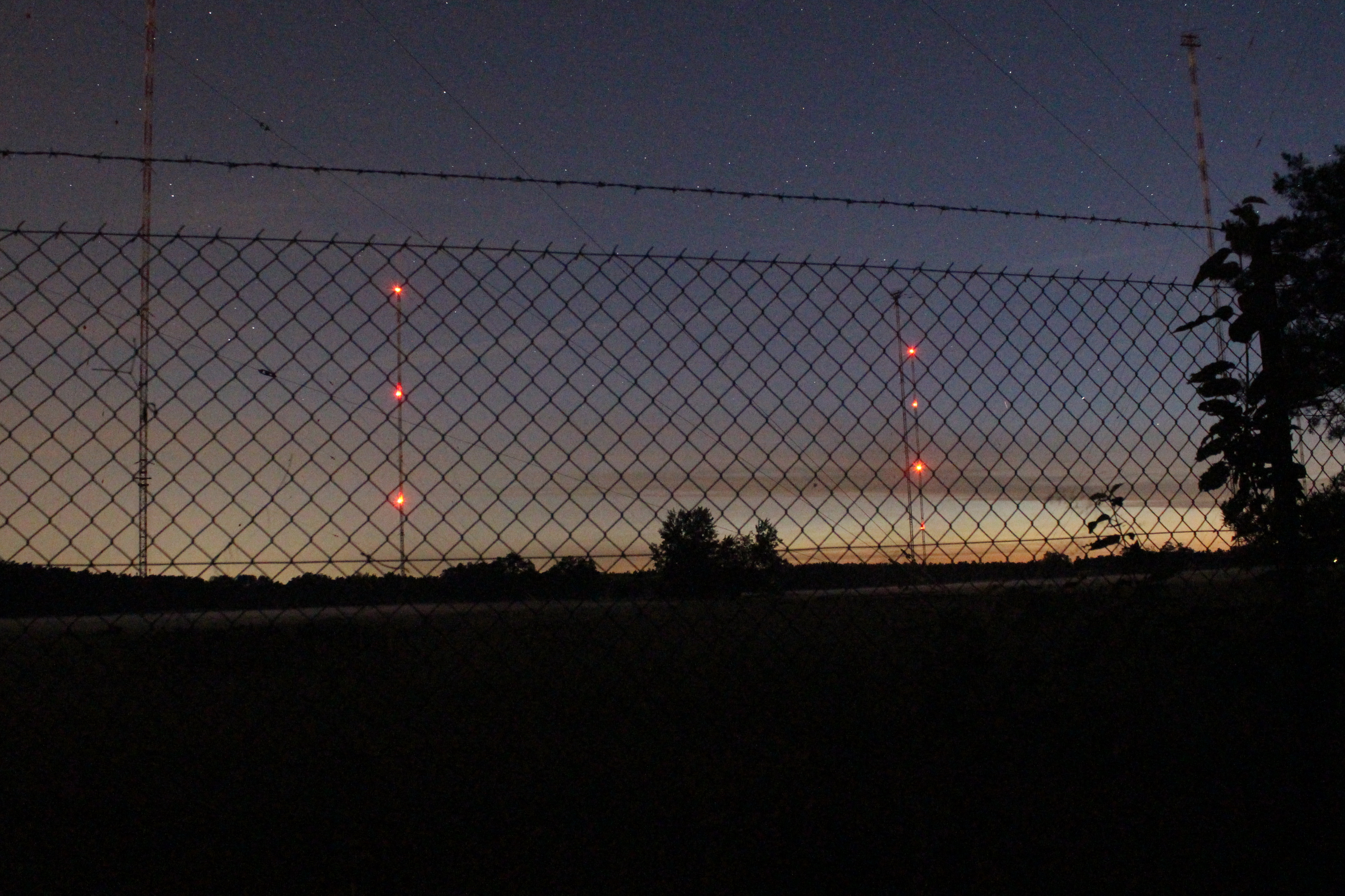 Der Langwellensender Mainflingen, der unter anderen auch zur Verbreitung des Zeitzeichens DCF77 dient, das fast alle unsere Funkuhren steuert, zu Beginn der Morgendämmerung.
