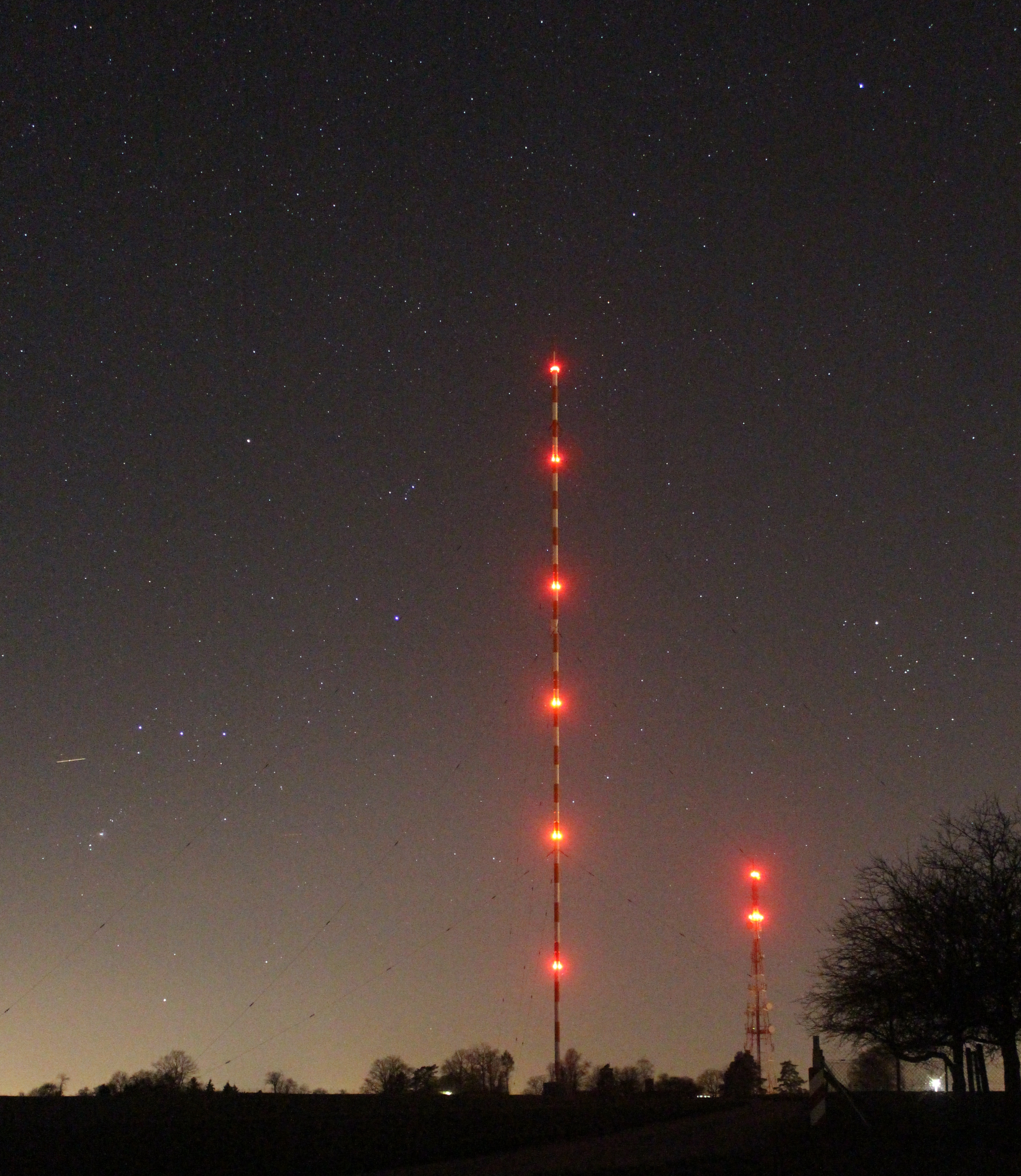 Das Sternbild Orion steht kurz vor dem Untergang, der 273 Meter hohe, große Sendemast des Senders Mühlacker, über den bis zum 9. Januar 2012 ein Programm des SWR auf der Mittelwellenfrequenz 576 kHz ausgestrahlt wurde, wird möglicherweise noch im Laufe dieses Monats abgerissen, nachdem ihn kürzlich sein Status als Kulturdenkmal entzogen wurde und wie lange es noch Beteigeuze machen wird, steht in den Sternen.