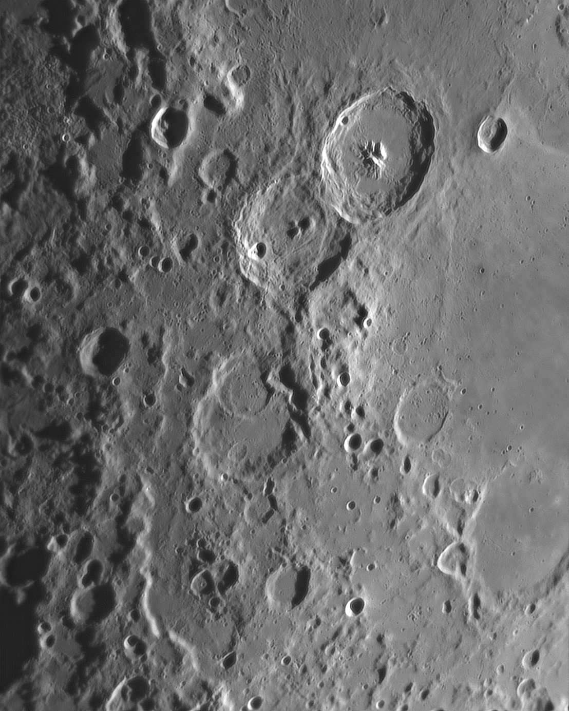 Das langsame Aufklaren am Abend des 30. März 2020 lies mich auf brauchbares Seeing tippen, das ich nutzen wollte. Zeitweise hat sich diese Erwartung erfüllt und ich konnte unter anderem diese markante Mondformation auf den Chip meiner Kamera bannen.