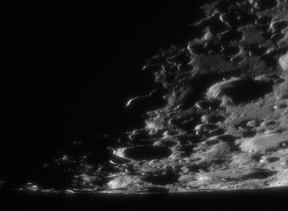 Eine Libration von 3,6 Grad bei Positionswinkel 177 Grad bringt auf diesem Bild den Krater in eine günstige Beobachtungsposition. Für eine Bestimmung von Formationen im Librationsgebiet reicht die Stärke der Libration jedoch nicht aus.