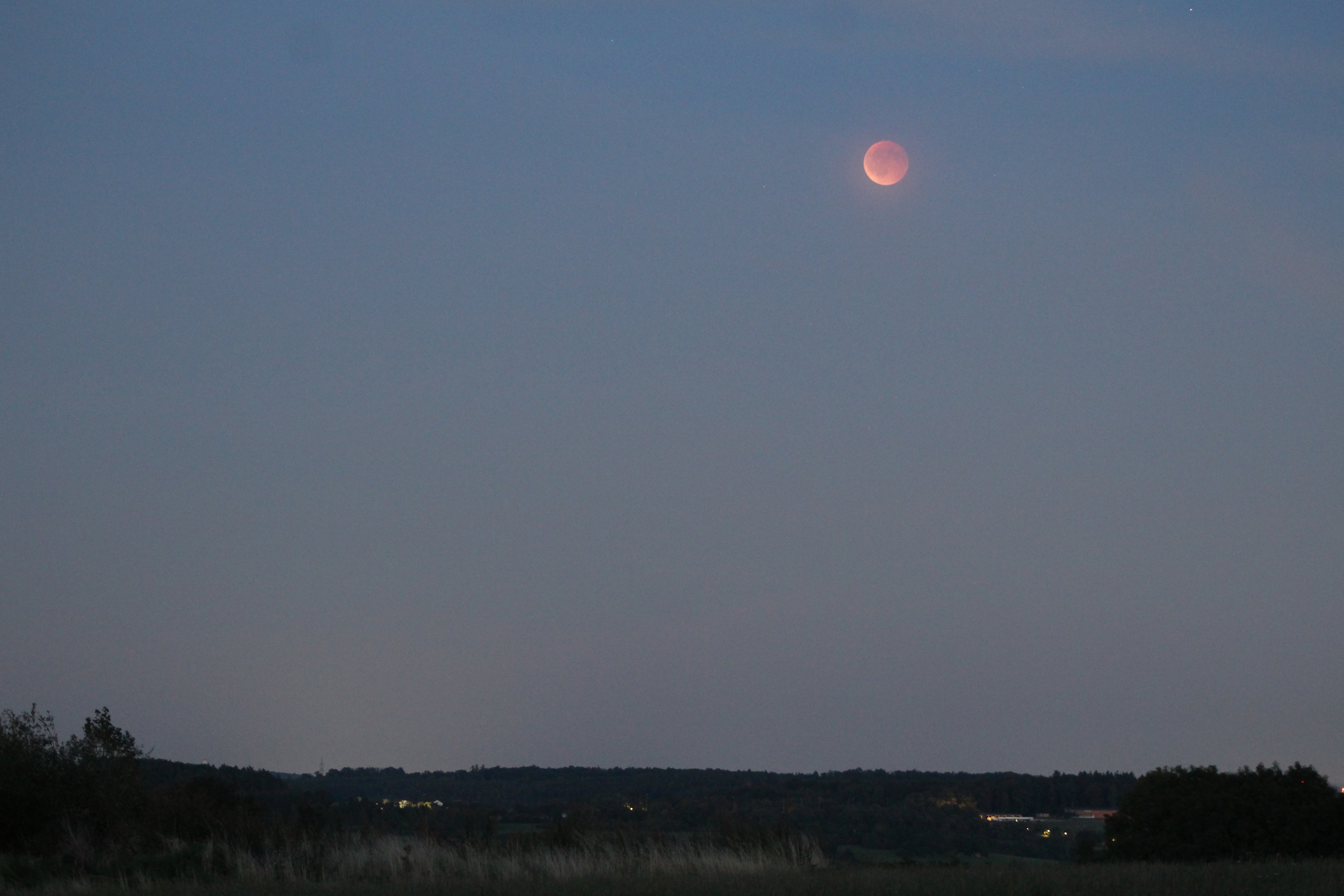Der total verfinsterte Vollmond, aufgenommen südlich von Weil der Stadt