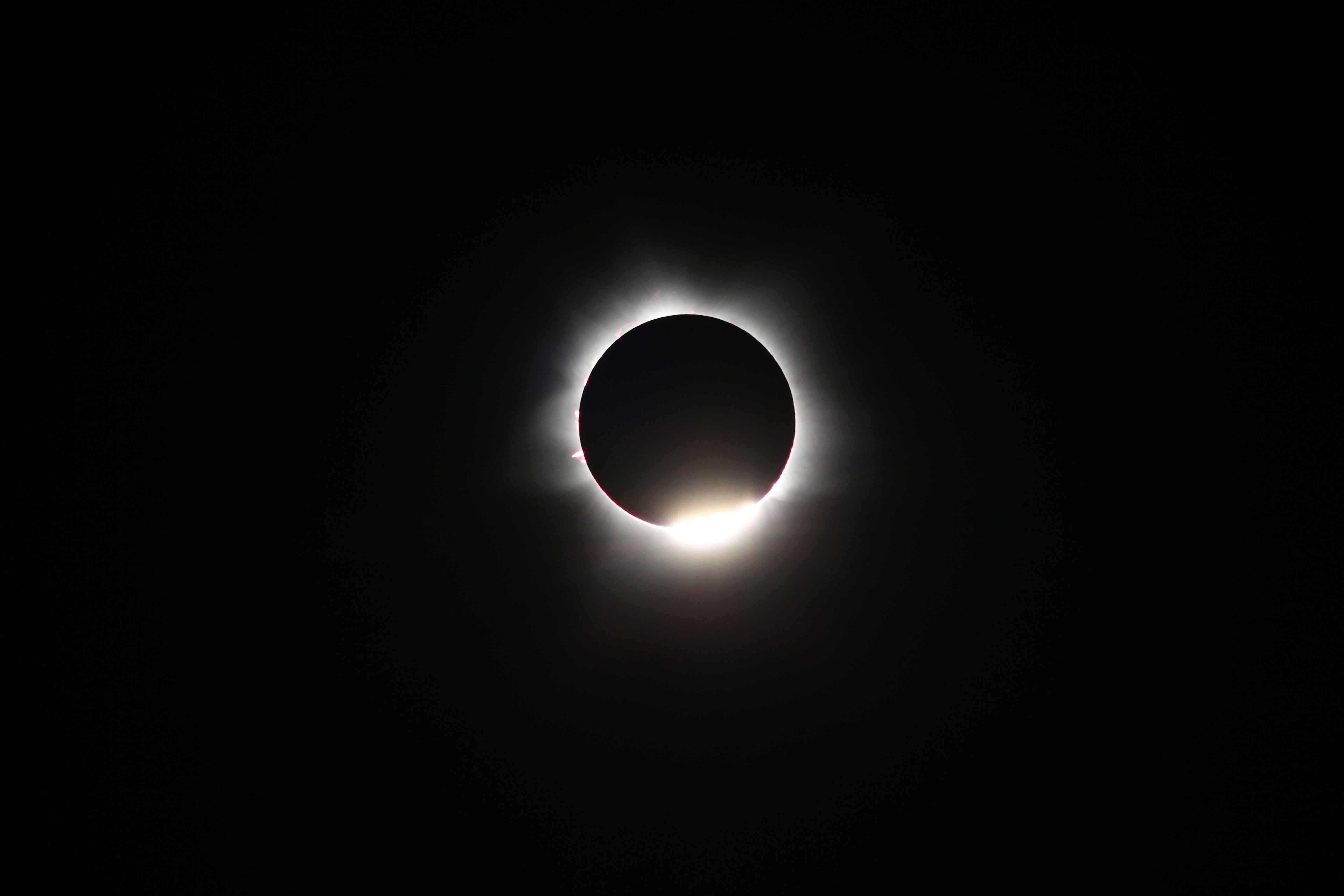 Zur Sonnenfinsternis am 20. April habe ich einen Standort am Meer nahe der Zentrallinie südlich von Exmouth in Westaustralien gewählt. Dort waren nur wenige Beobachter, die meisten waren am Town Beach von Exmouth geblieben. Mit nur 65s war die Totalitätsphase dieser Hybrid-Sonnenfinsternis sehr kurz. Schon während des Diamantrings erschienen am Rand zahlreiche Protuberanzen.