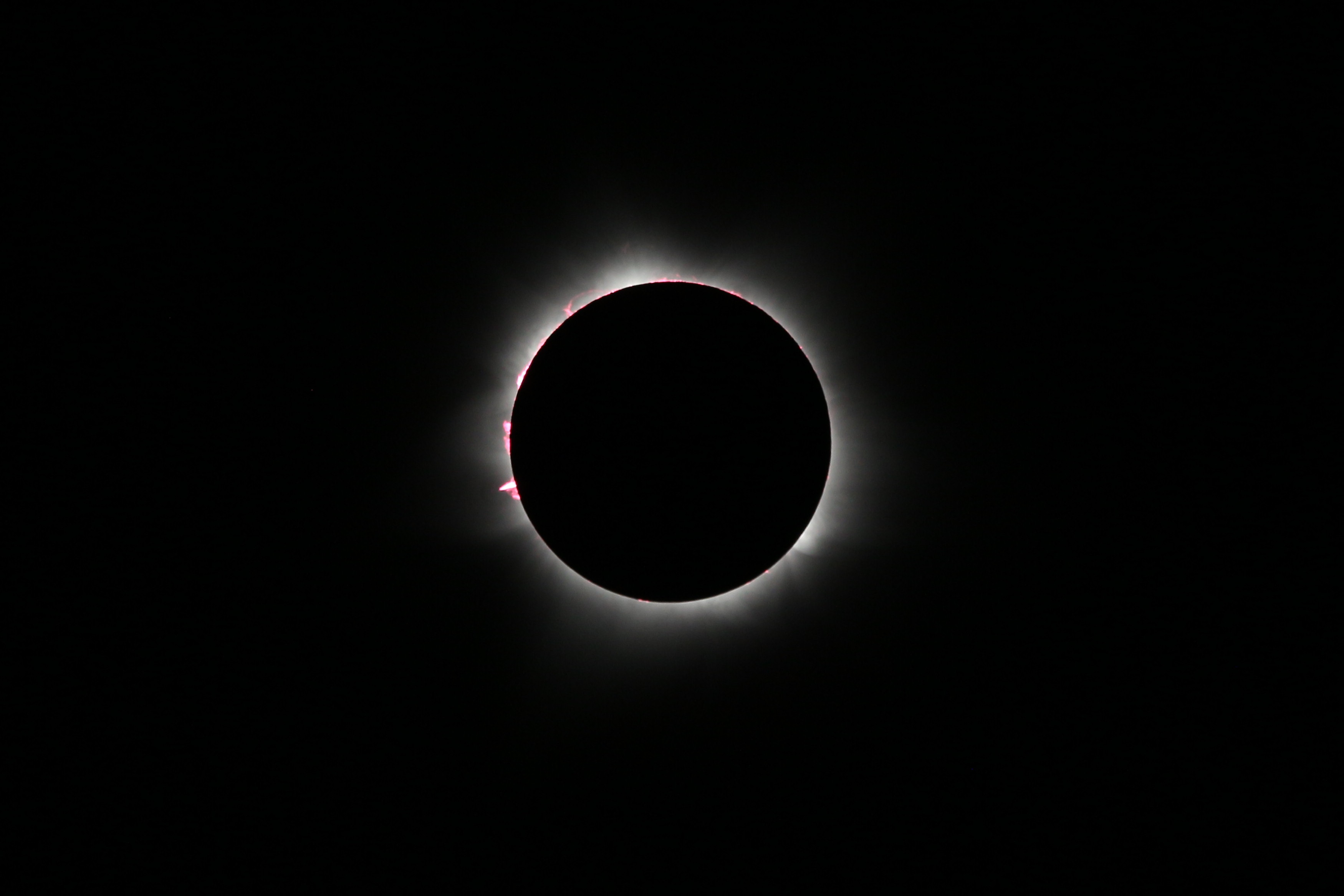 Zur Sonnenfinsternis am 20. April habe ich einen Standort am Meer nahe der Zentrallinie südlich von Exmouth in Westaustralien gewählt. Dort waren nur wenige Beobachter, die meisten waren am Town Beach von Exmouth geblieben. Mit nur 65s war die Totalitätsphase dieser Hybrid-Sonnenfinsternis sehr kurz. Am Rand erschienen zahlreiche Protuberanzen.