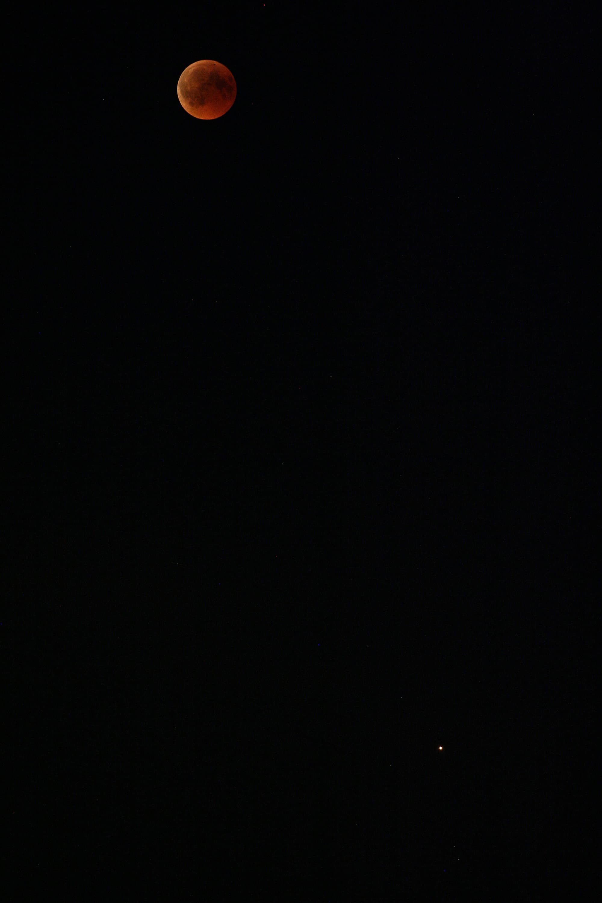 Totale Mondfinsternis vom 27. Juli 2018 mit Mars, fotografiert bei Heidenrod-Langschied, Brennweite 168 mm Uhrzeit 22:52 Uhr