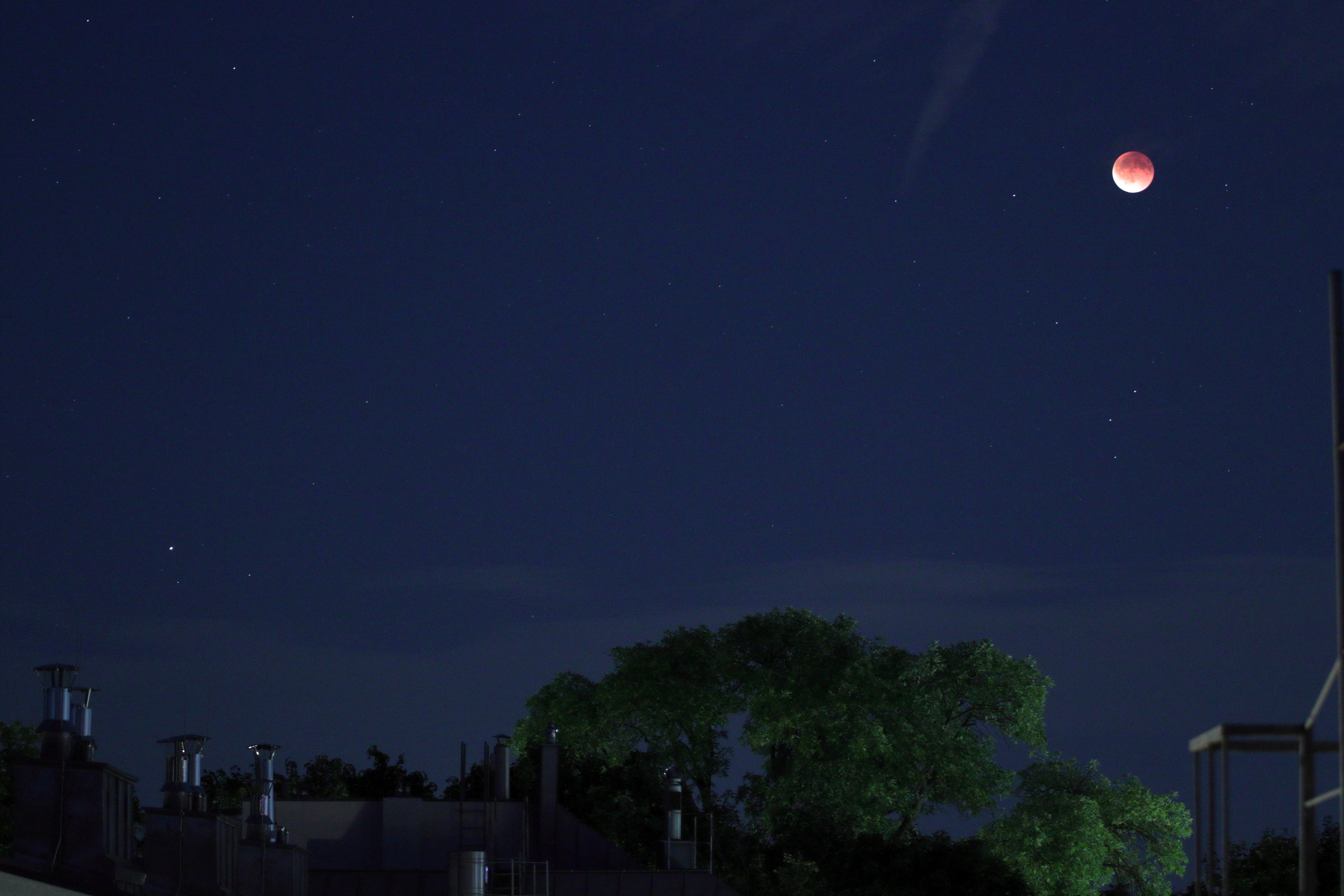 Total verfinsterter Mond und links Saturn