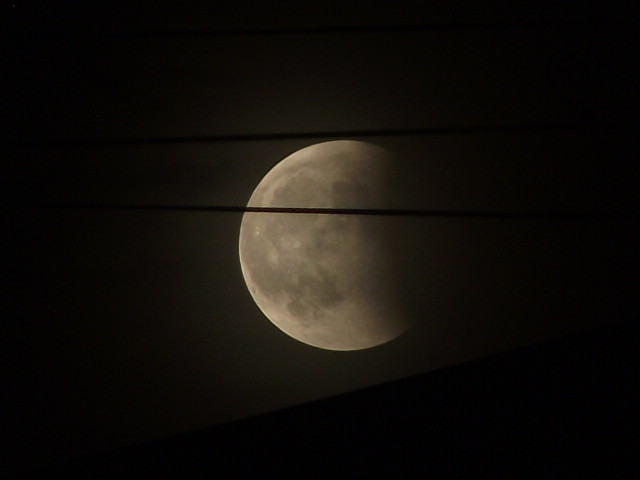 Um 23:45 Uhr MESZ riss die Wolkendecke auf und man sah noch die letzen Teile der partiellen Phase der totalen Mondfinsternis vom 15.6.2011 über Offenbach am Main. Den Blutmond konnte ich nicht sehen.