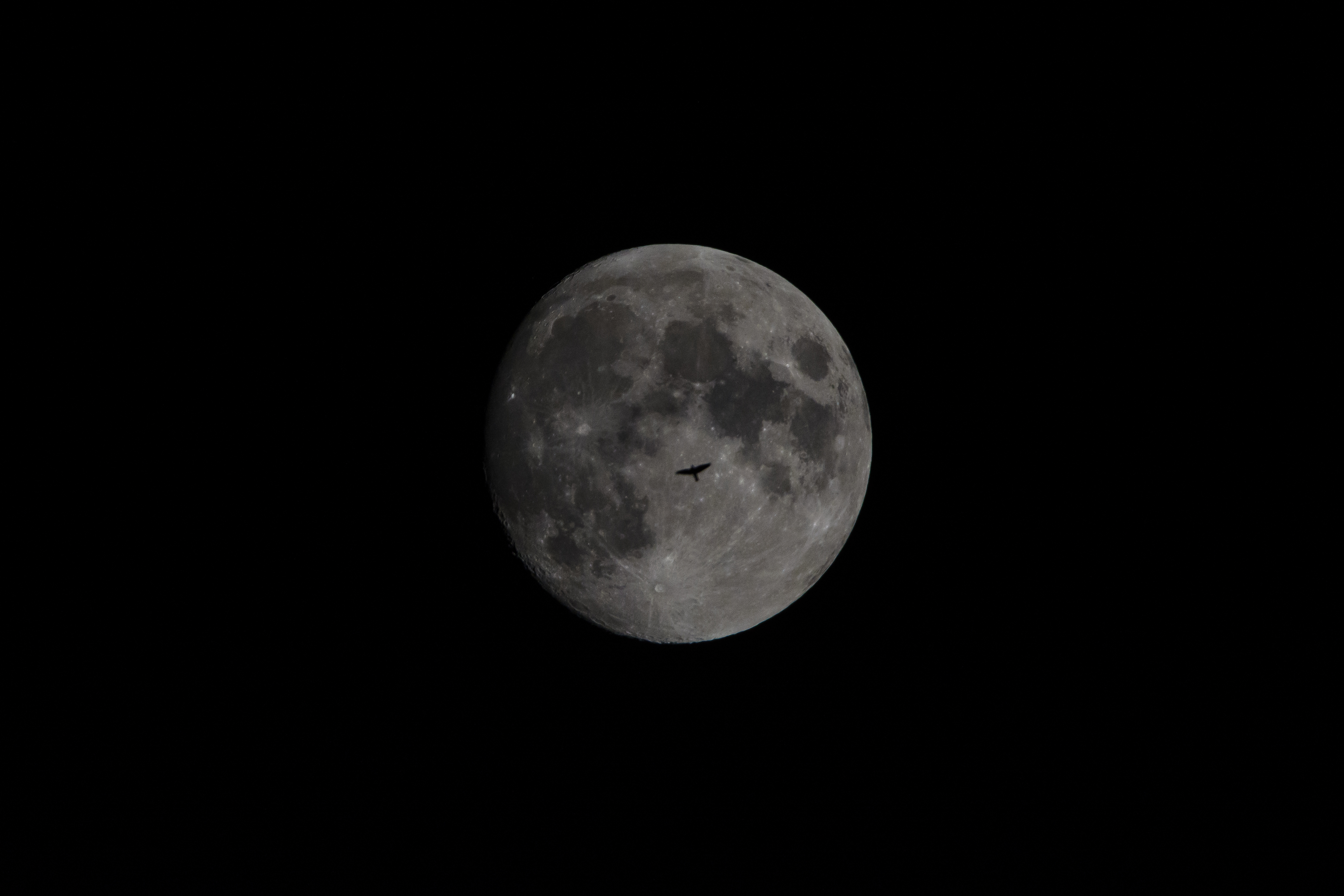 Noch während ich erste Probeaufnahmen für ein Mondfoto machte, sah ich im Sucher etwas vorbeifliegen. Ich dachte zuerst, es sei ein Flugzeug gewesen, bis ich auf dem Monitor erkannte, dass ein Vogel (wahrscheinlich ein Turmfalke) nachts um 0:55 Uhr ins Bild geraten war. Ein glücklicher Zufall!