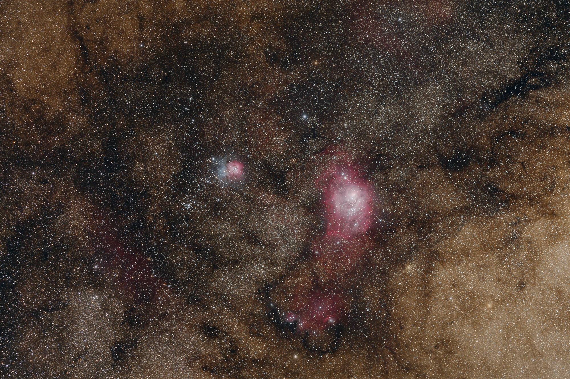 Die berühmte M 8- und M 20-Region. Die Aufnahme habe ich Piggyback gemacht während meines Namibia Urlaubs.