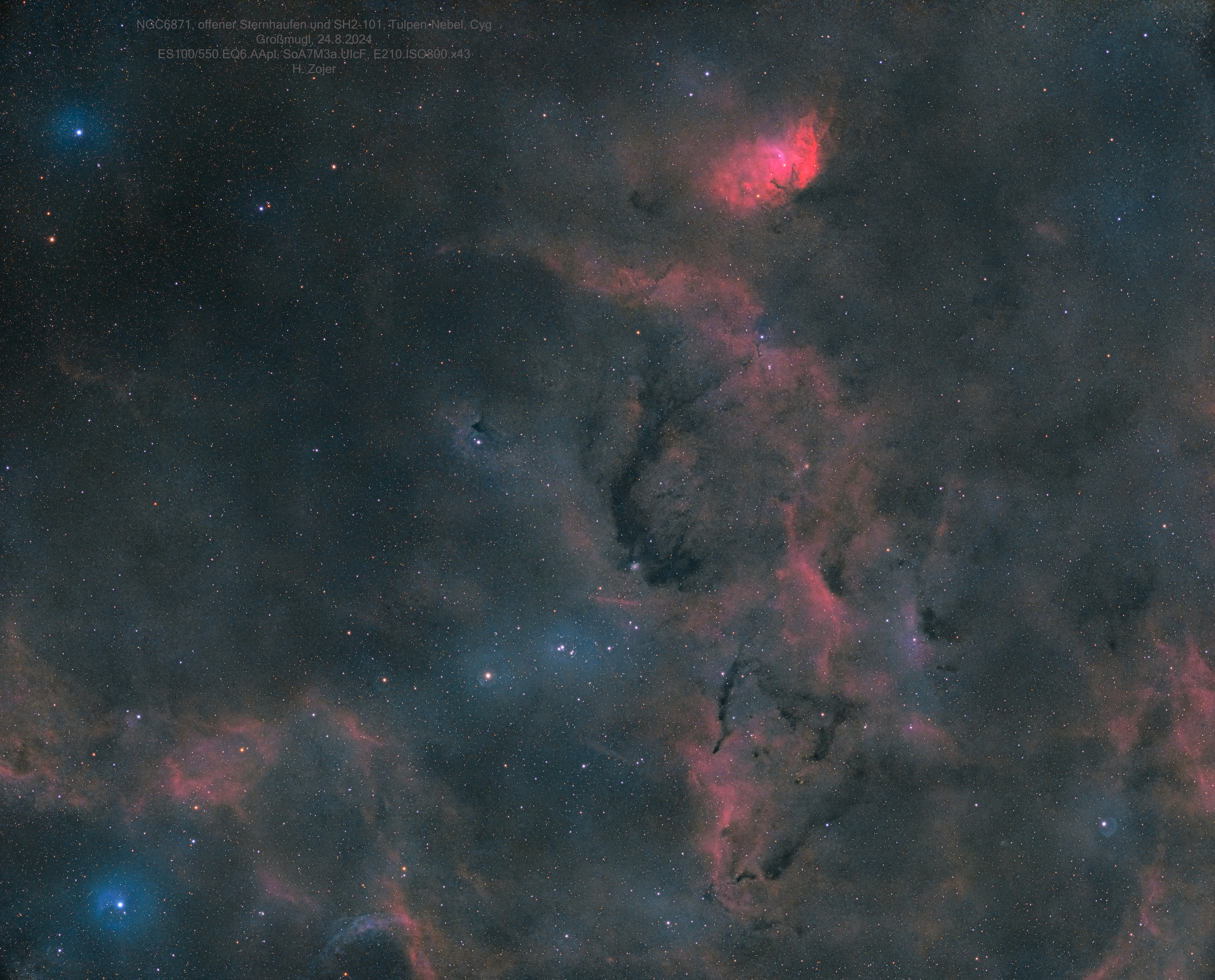 Der Mond leuchtete zwar noch mit etwa 60% Helligkeit, aber der Himmel war klar, sodass mir 43 Einzelbelichtungen mit jeweils 210 Sekunden Belichtungszeit gelangen. Die Nacht war sehr warm und die Luft in Großmugl auch trocken. Zwischendurch wehte ein kühlender Wind...