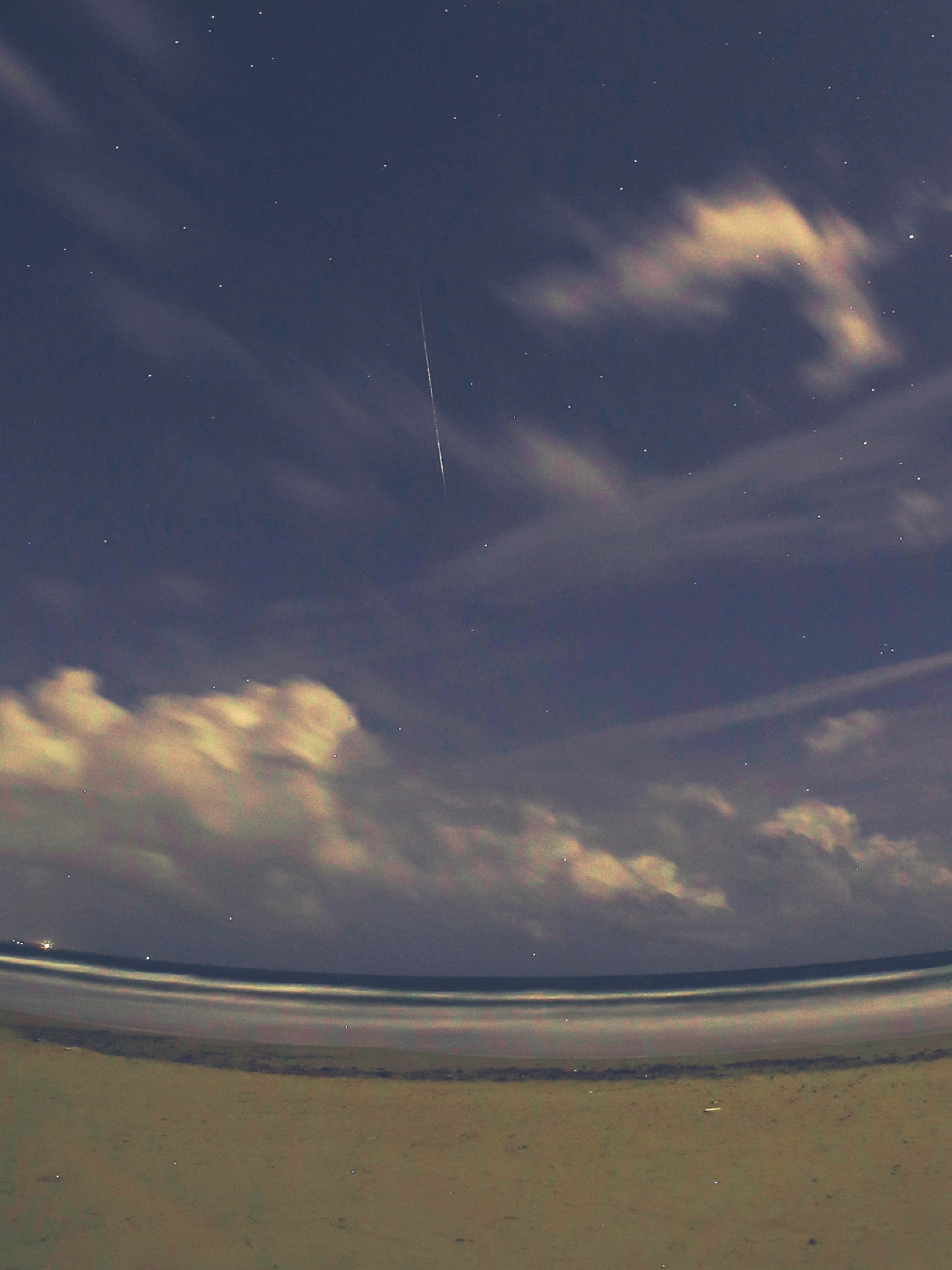 Leserbilder Astronomie: Two meteors geminids above the coast Porto Ulisse Sicily