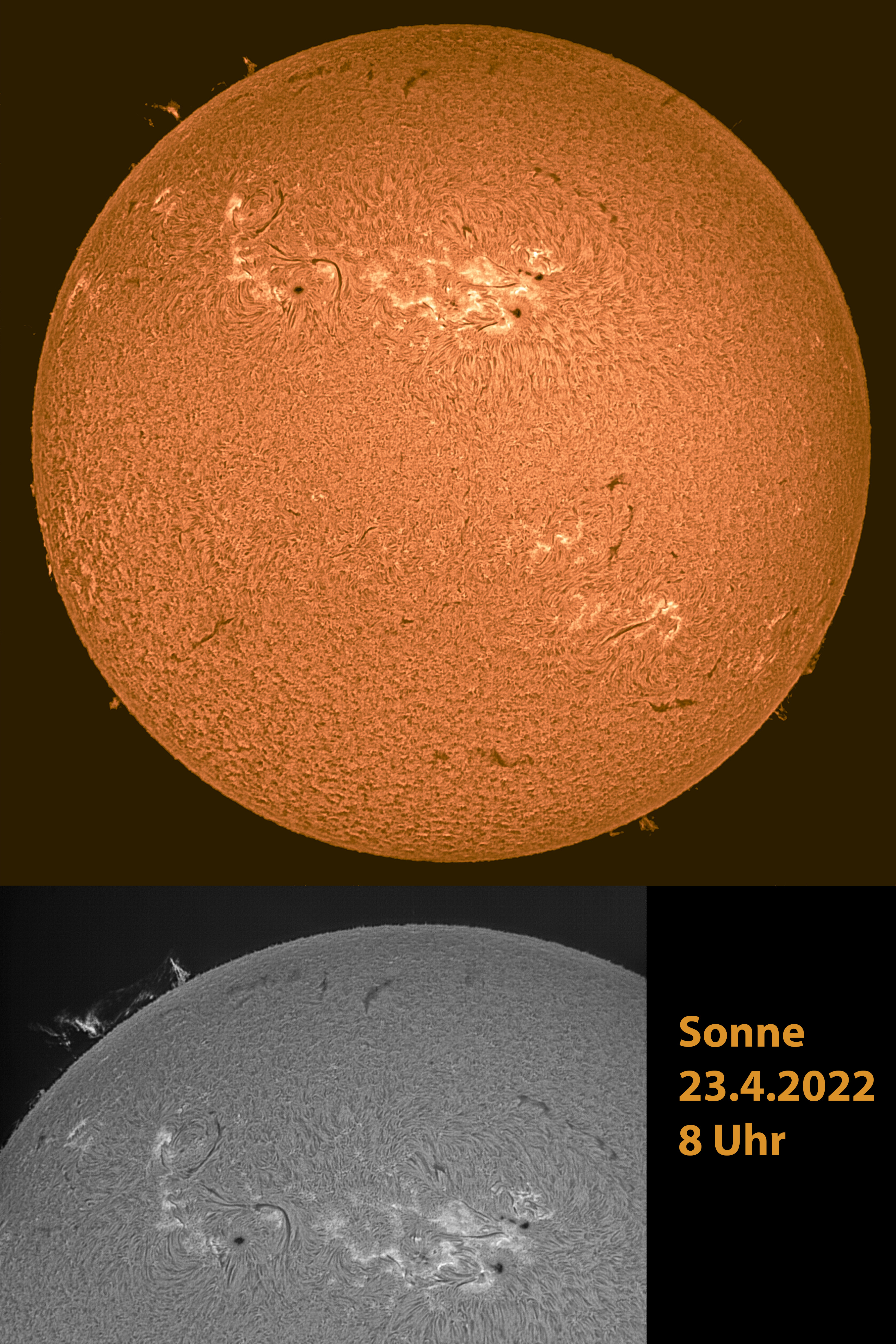 Leserbilder Astronomie: Überblick und Detail: Sonne am 23. April 2022