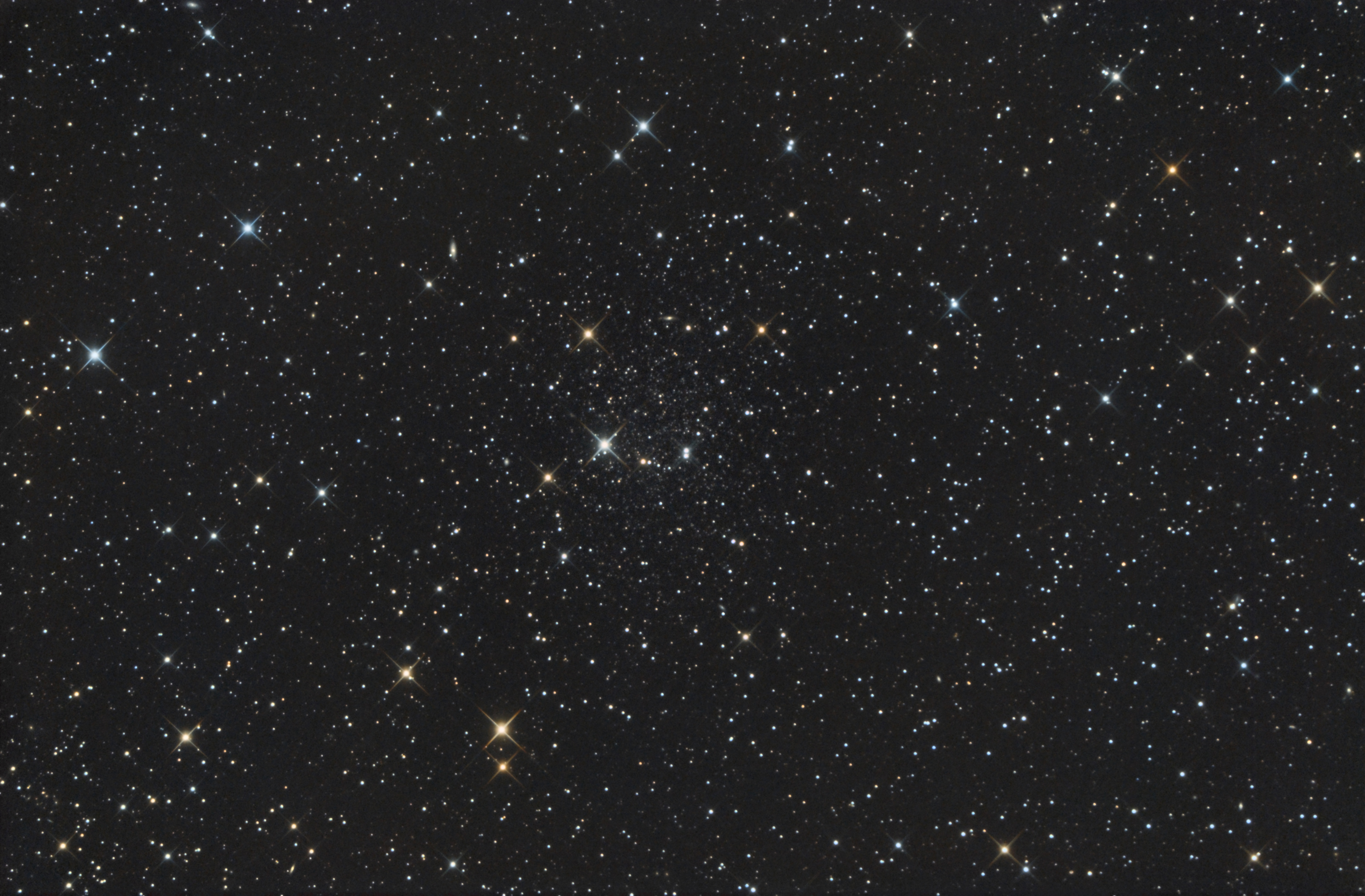UGC 10822 im Sternbild Draco ist eine der elf Zwerggalaxien unserer Milchstraße, die gravitativ an unsere Galaxie gebunden sind. Sie ist als schwach leuchtende Wolke im Bildzentrum erkennbar. Draco Dwarf zählt zu den leuchtschwächsten Begleitern, woraus die lange Belichtungszeit von 9 Stunden resultiert. Ihre Entfernung zur Erde beträgt 265.000 Lichtjahre, ihr Durchmesser 2.800 Lichtjahre. Aufgrund der Geschwindigkeitsverteilung wird davon ausgegangen, dass UGC 10822 von einem Halo aus Dunkler Materie umgeben ist, weswegen sie ein interessantes Forschungsobjekt darstellt.