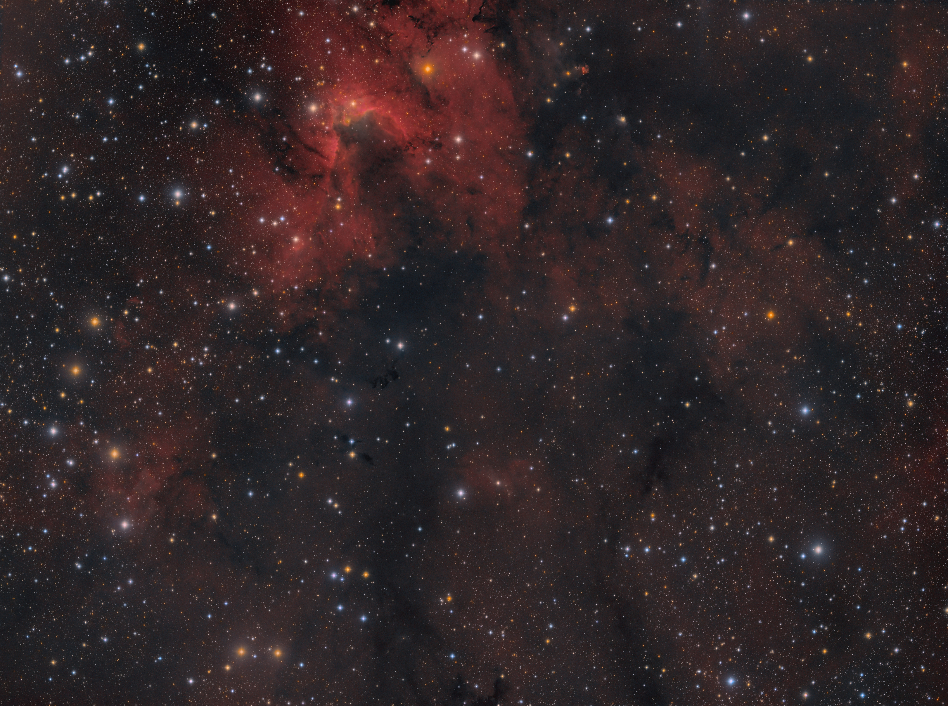 Auch der Region unterhalb des Höhlennebels soll mit diesem H-Alpha-LRGB-Ausschnitt Beachtung geschenkt werden.