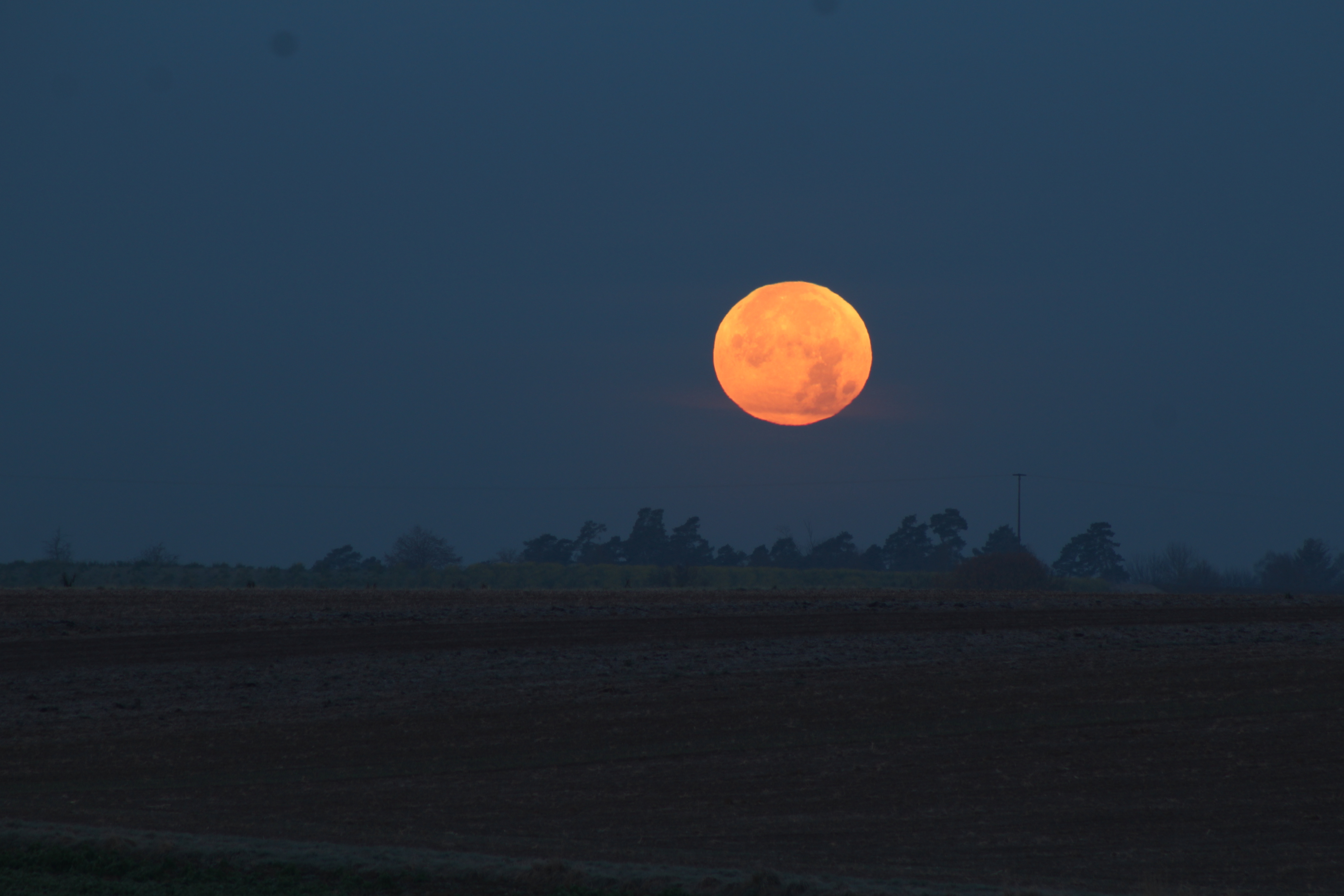 Untergehender, im irdischen Halbschatten stehender Vollmond, aufgenommen zwischen Magstadt und Schafhausen.