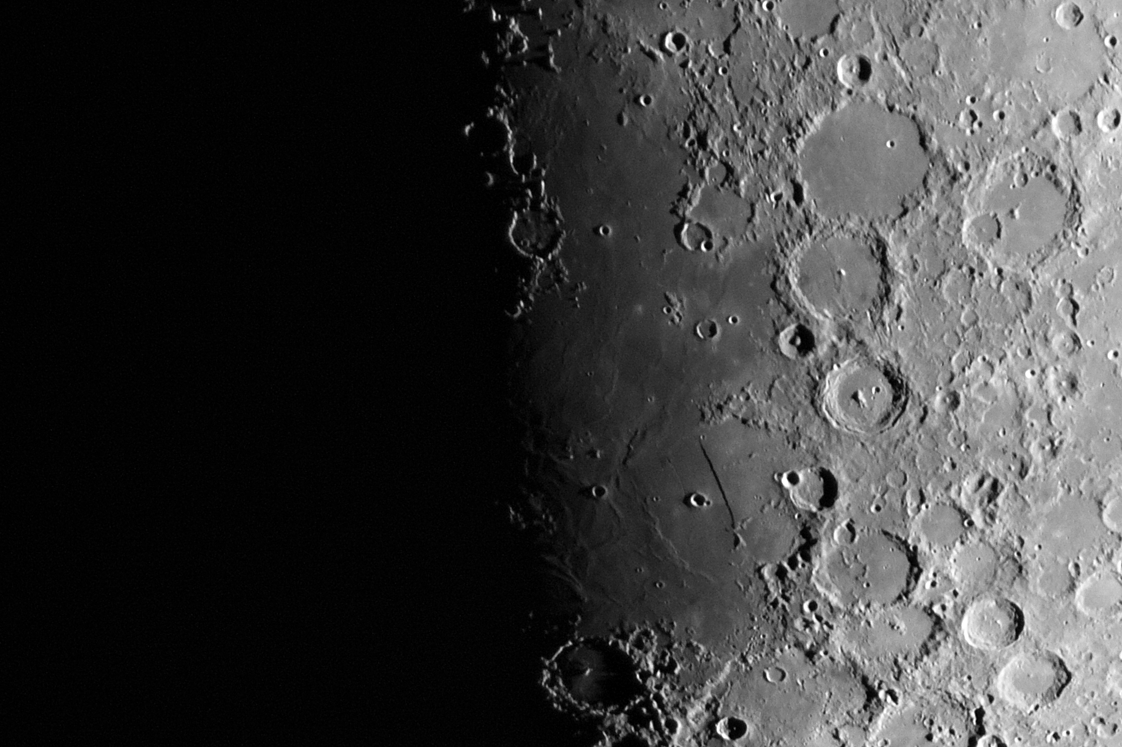 Aber auch der Krater Guericke und Pitatus direkt an der Licht/Schattengrenze sind sehr schön beleuchtet.