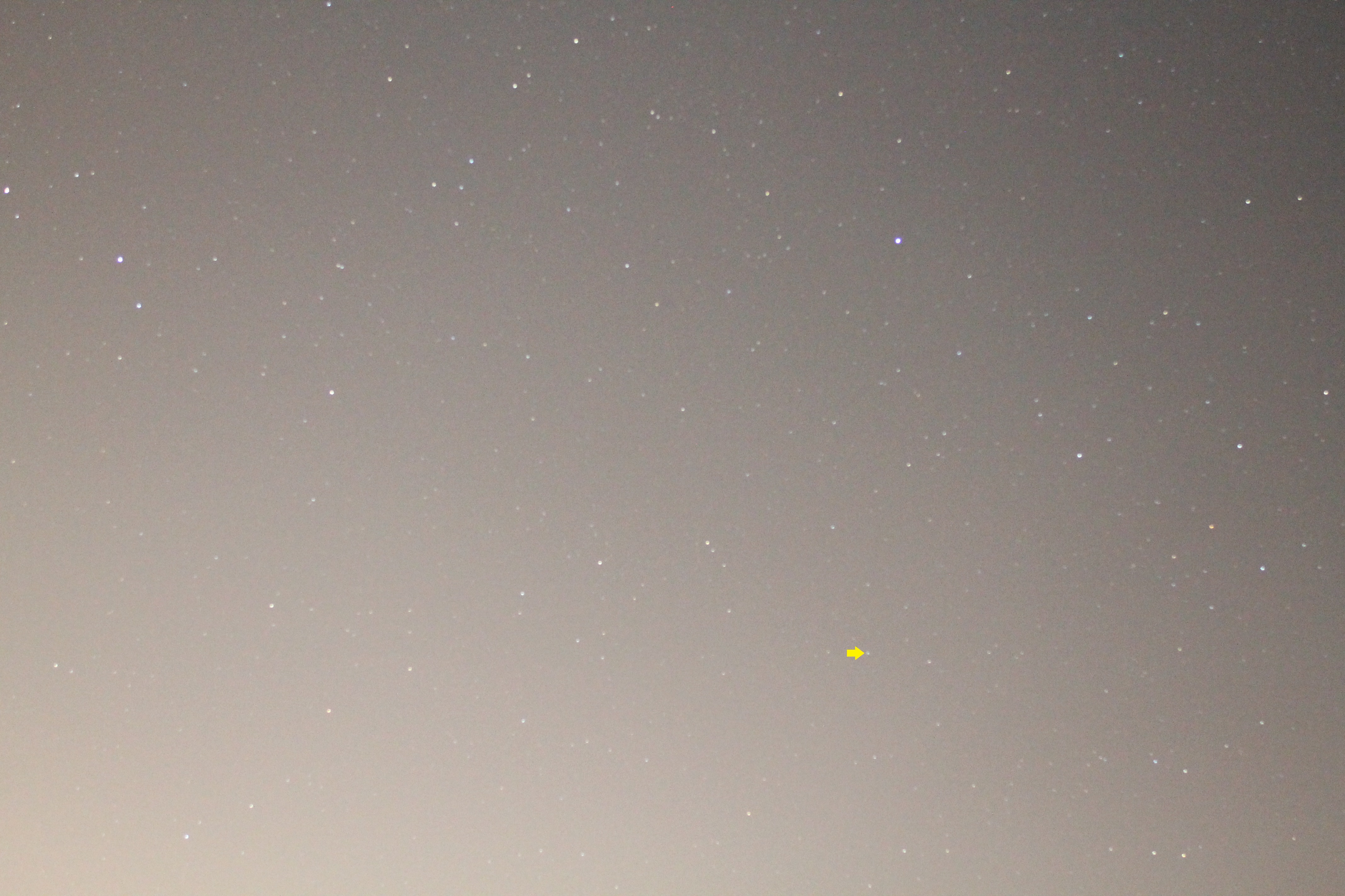 Anschließend habe ich noch den helleren Uranus im Sternbild Fische fotografiert, den ich ebenfalls mit einem gelben Pfeil markiert habe.