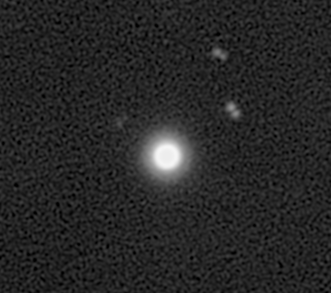 Nach einem ersten Erfolg vor einigen Wochen, den Epsilonring aufzunehmen, verfolgte ich das Ziel, dieses Ergebnis zu wiederholen. Jedoch musste ich einige Fehlschläge einstecken, einfach weil das Seeing zu schlecht war. Gestern Abend aber zeigte sich eine geringe bis gar keine Szintillation und daher beschloss ich einen erneuten Versuch. Schnell zeigte sich, dass das Planetenscheibchen ruhig mit klaren Randkonturen zu sehen war. Somit machte ich zwei Aufnahmen zu je 30 Minuten bei 250 ms mit einem Methanbandfilter. Diese habe ich im Anschluss gestackt.