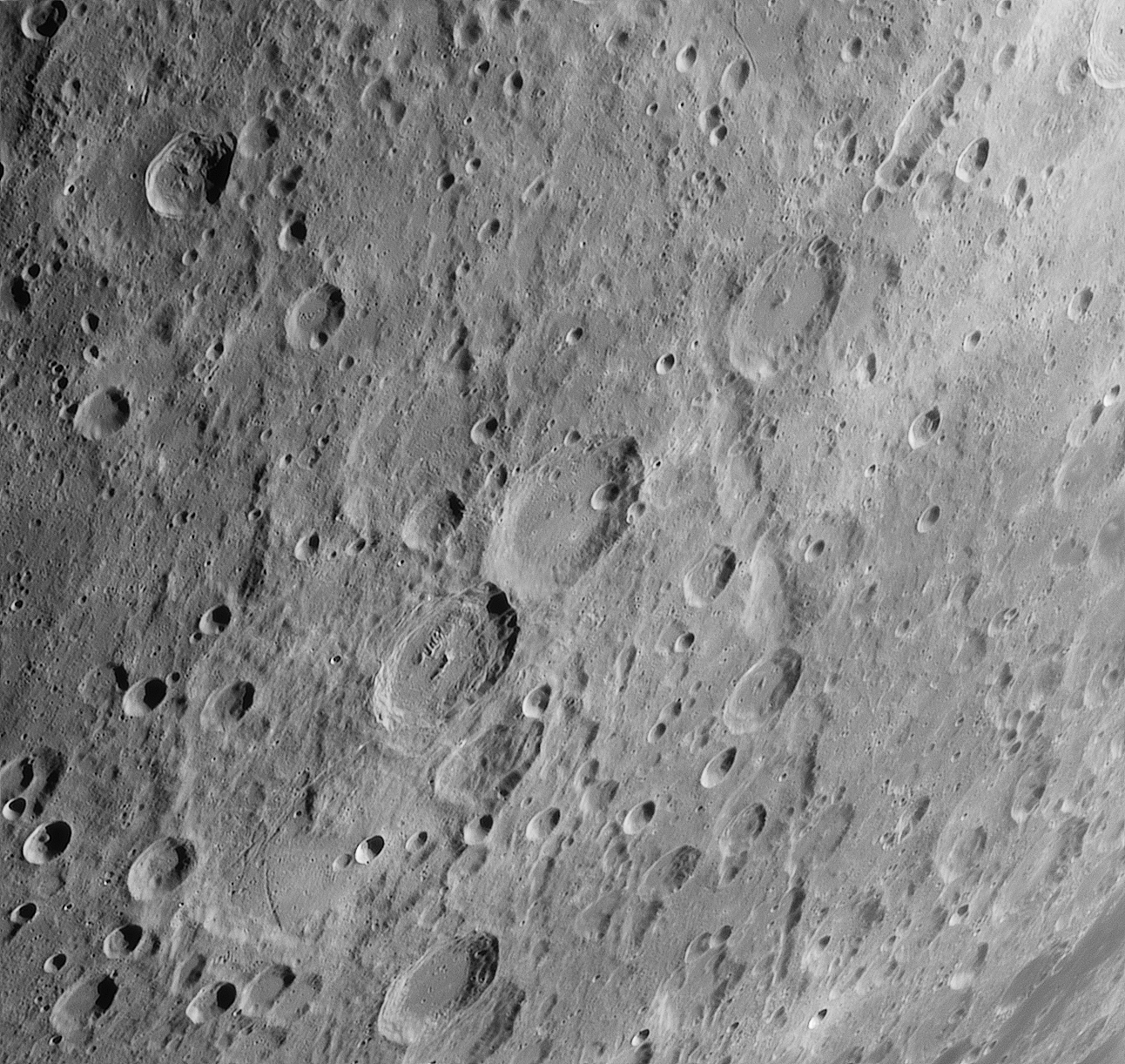 Die Krater Janssen, Fabricius, Metius und Rheita bilden eine aufsteigende Diagonale in diesem Bild. Von Rheita zieht das Vallis Rheita nach Süden, durchquert den Krater Young, der in etwa die Mitte des Tales markiert und endet beim Krater Reimarus. Es ist das mächtigste Tal seiner Art auf dem erdzugewandten Seite des Mondes.