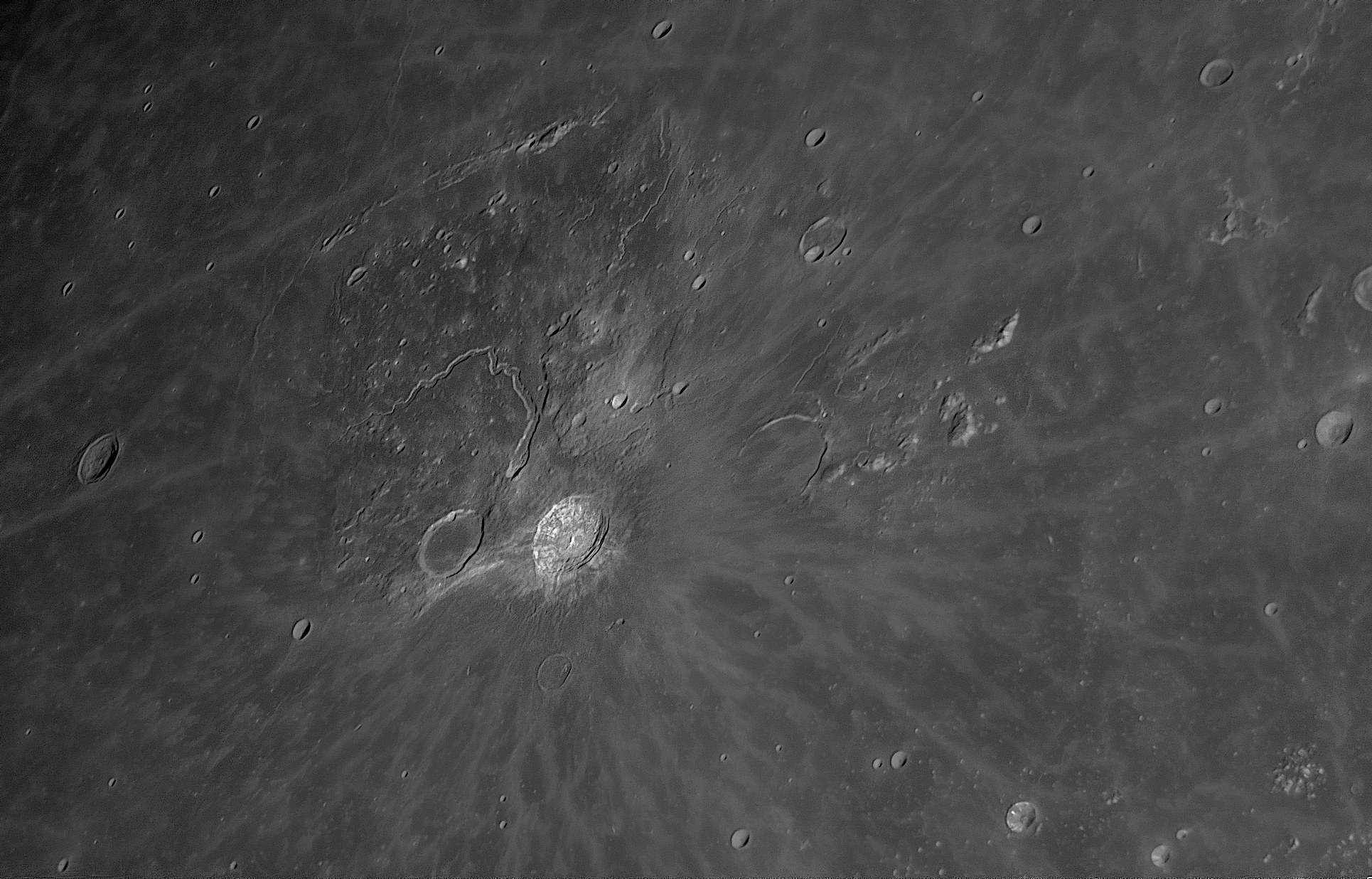 Das Schrötertal und der Krater Aristarch im abnehmenden Mondlicht.