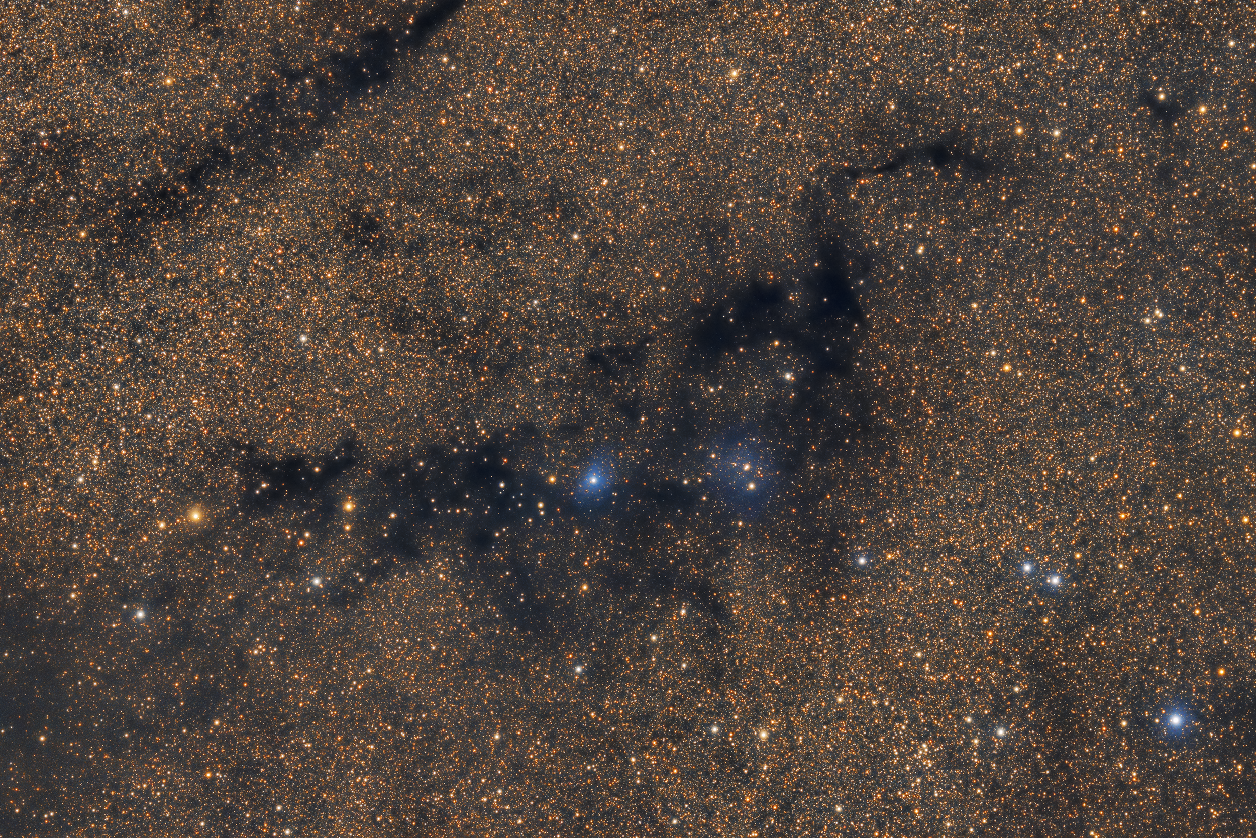 Dieses wunderbare Gebiet in der Sommermilchstraße enthält einige kleine Reflexionsnebel (wie vdB 126 in der Mitte des Bildes) aber auch enorm ausgeprägte Dunkelwolken, die sich vor die Sterne der Milchstraße schieben. Weil der Gesamteindruck des Bildausschnitts einer "angeblichen" alten Fotografie des Loch Ness Monsters ähnelt, hab ich diese Definition mal salopp als amüsanten Beinamen für das Objekt gewählt …