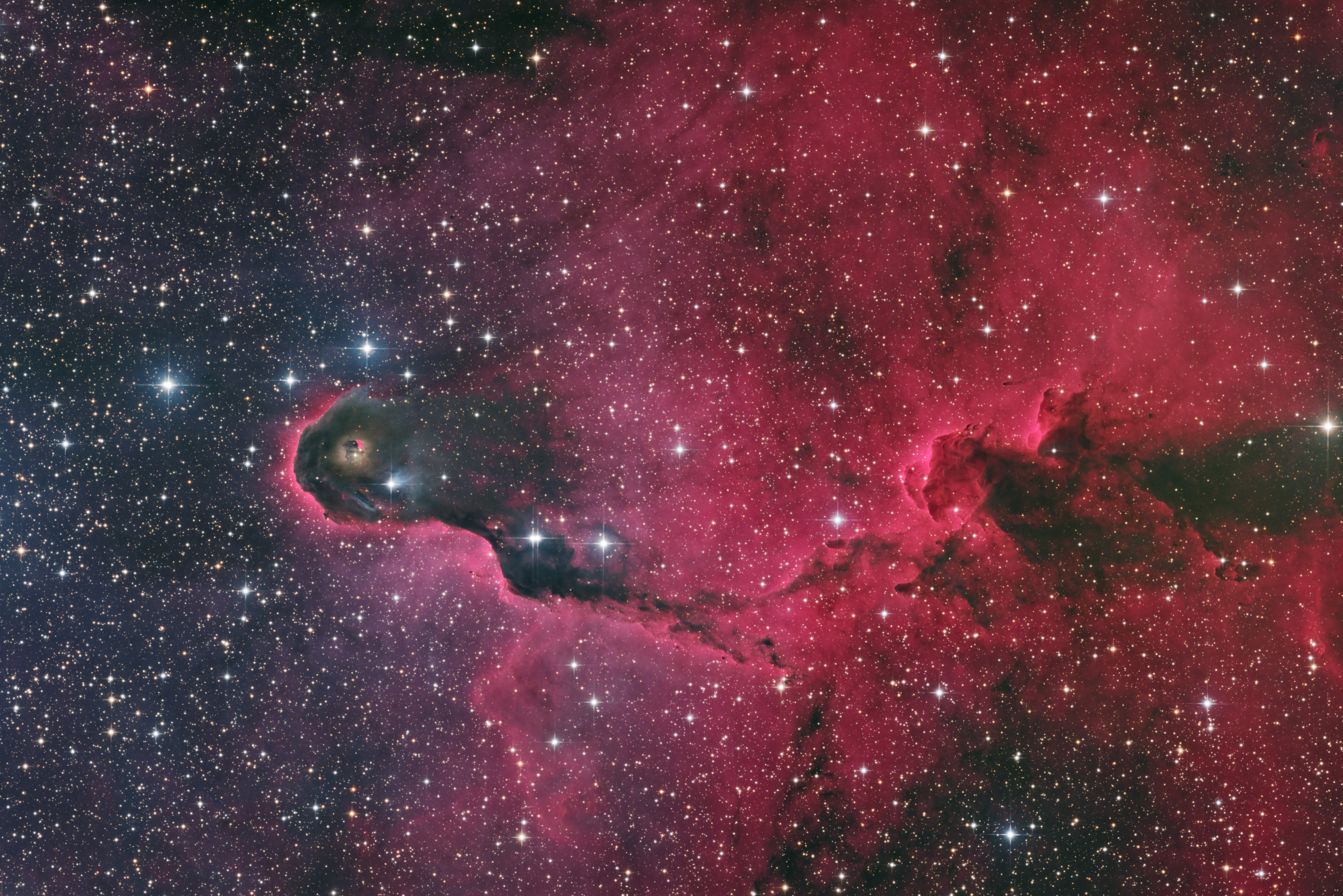 Der Elefantenrüsselnebel, auch bekannt als IC1396A, ist ein klassisches Sommermotiv der nördlichen Breitengrade. Die Sterne im Zentrum der hell berandeten Globule ist ein praktisches Prüfmittel zur Auflösungskraft des optischen Systems. Die umgebenden H-alpha Gebiete überraschen immer wieder mit faszinierenden, feinen Strukturen.