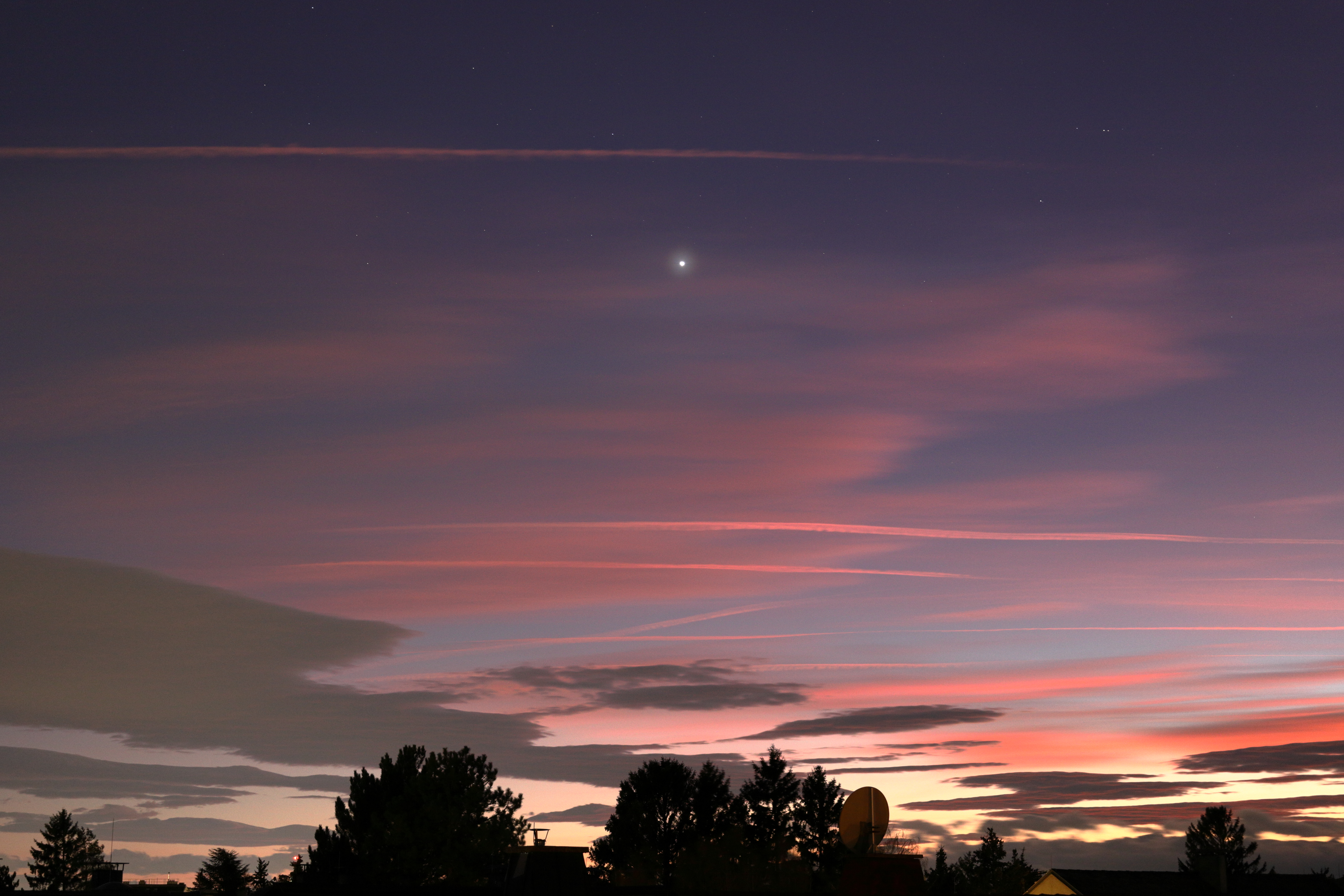 Venus, Abendrot und einige hellere Sterne des Sternbilds Steinbock (rechts Alpha und Beta Capricorni).