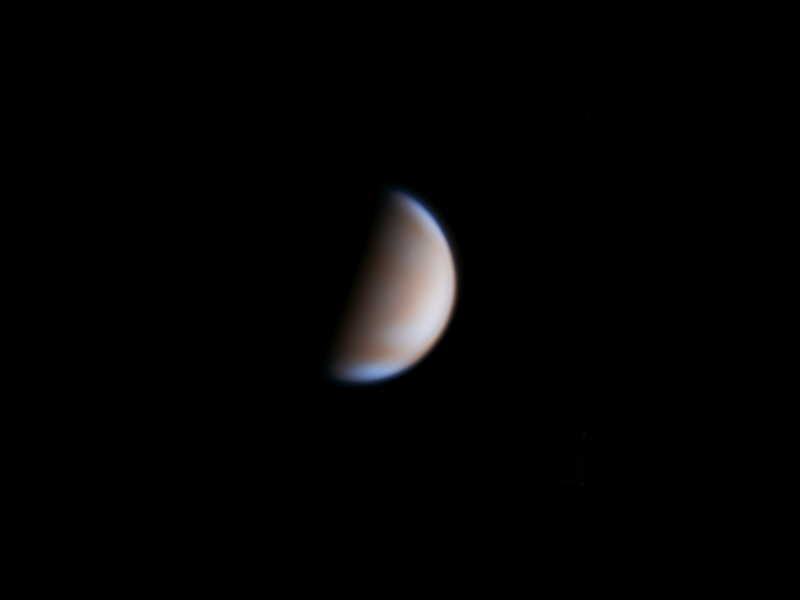Unser Nachbarplanet am Abend des 16. März 2020 als UV-Infrarot-Komposit. Einige Strukturen sind in der dichten Atmosphäre zu erkennen.