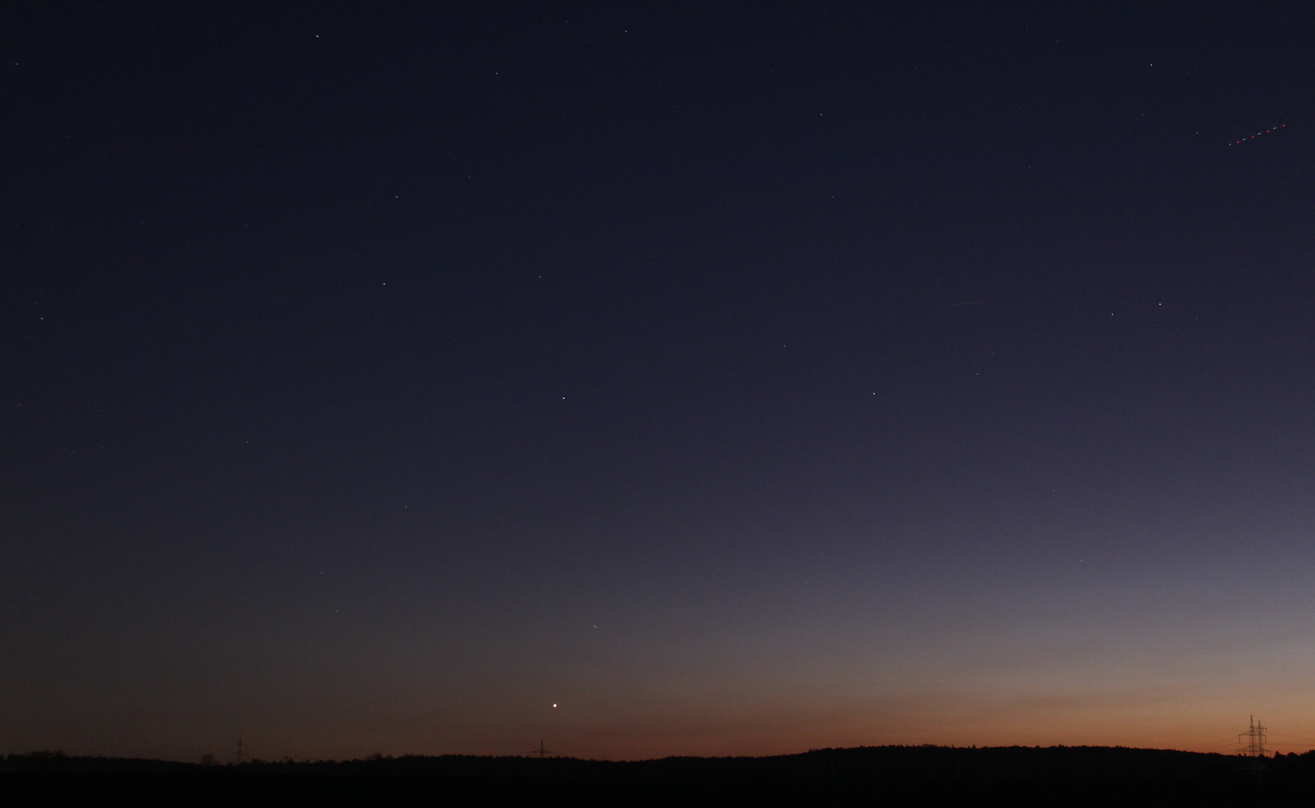 Endlich wieder Venus! Der Abendstern in der fortgeschrittenen Abenddämmerung, aufgenommen zwischen den Sindelfingern Ortsteilen Maichingen und Darmsheim.