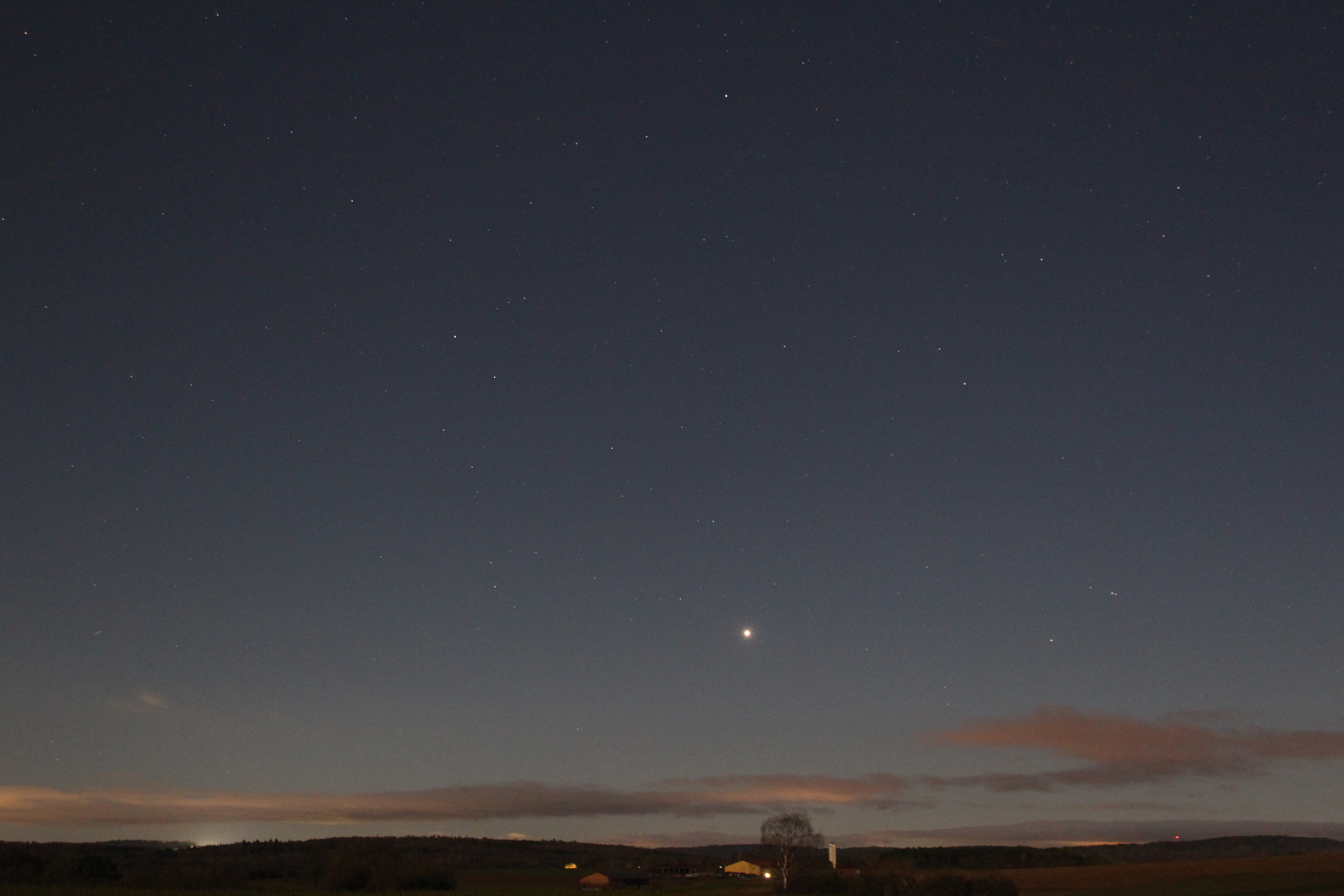 Venus am Abendhimmel im Sternbild Steinbock, aufgenommen westlich des Sindelfinger Ortsteils Maichingen.