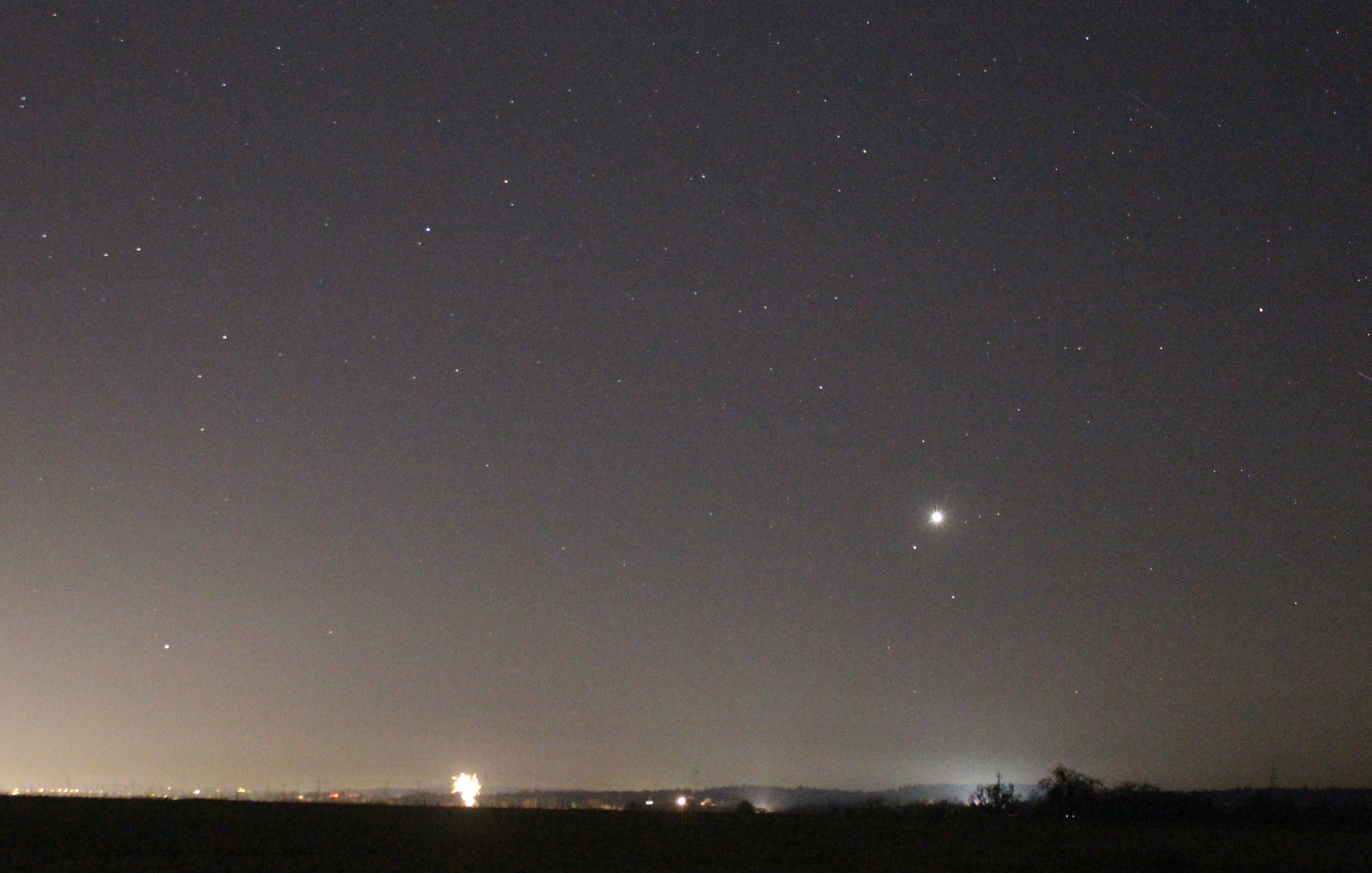 Venus und Fomalhaut über Gärtringen - man sieht auch eine Feuerwerksrakete in der Ferne aufsteigen, denn der Jahreswechsel ist nicht mehr weit!
