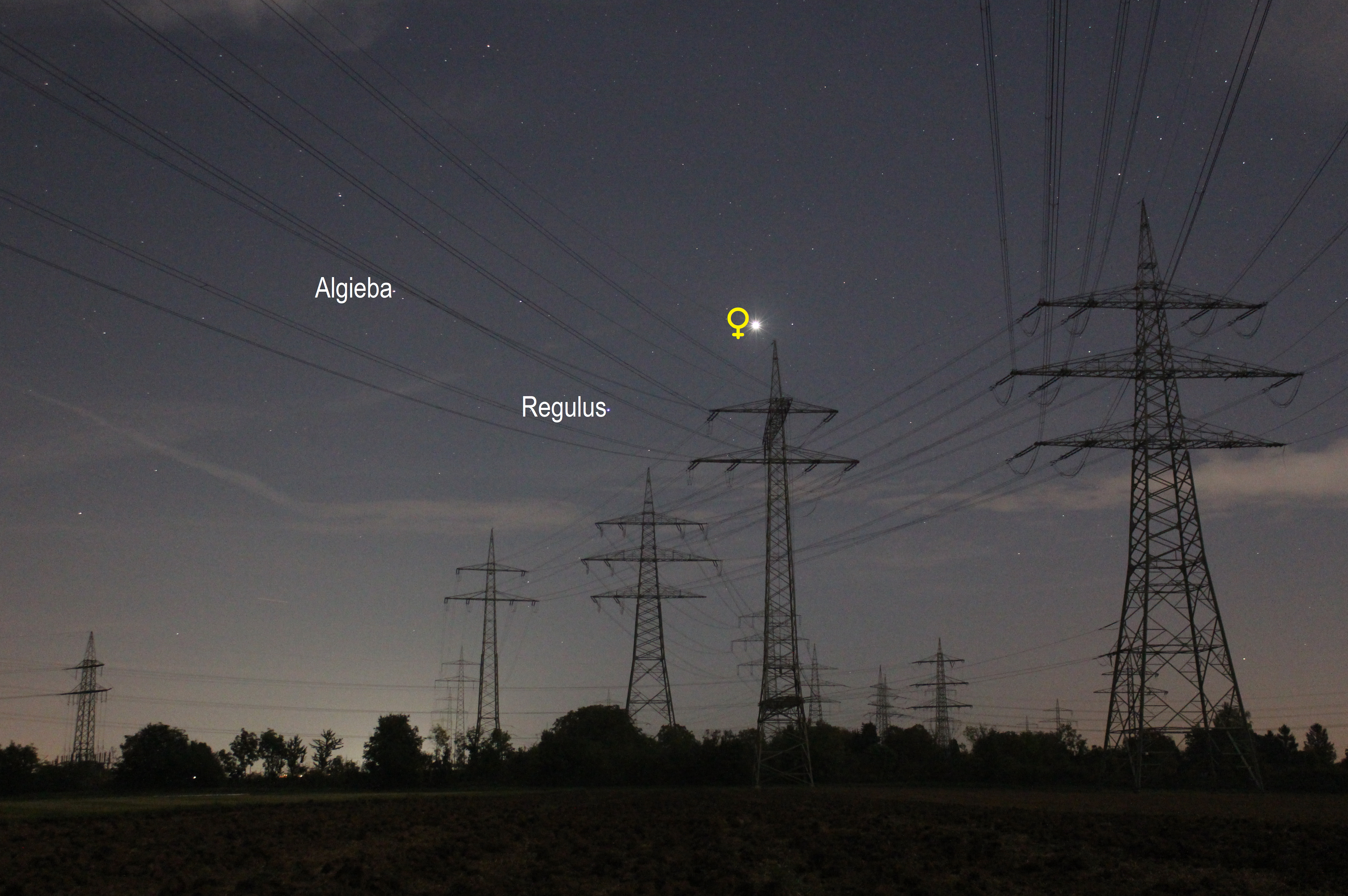 Venus am Morgenhimmel, aufgenommen bei aufziehenden Wolken über den Hochspannungsleitungen nördlich des Umspannwerks Hoheneck.