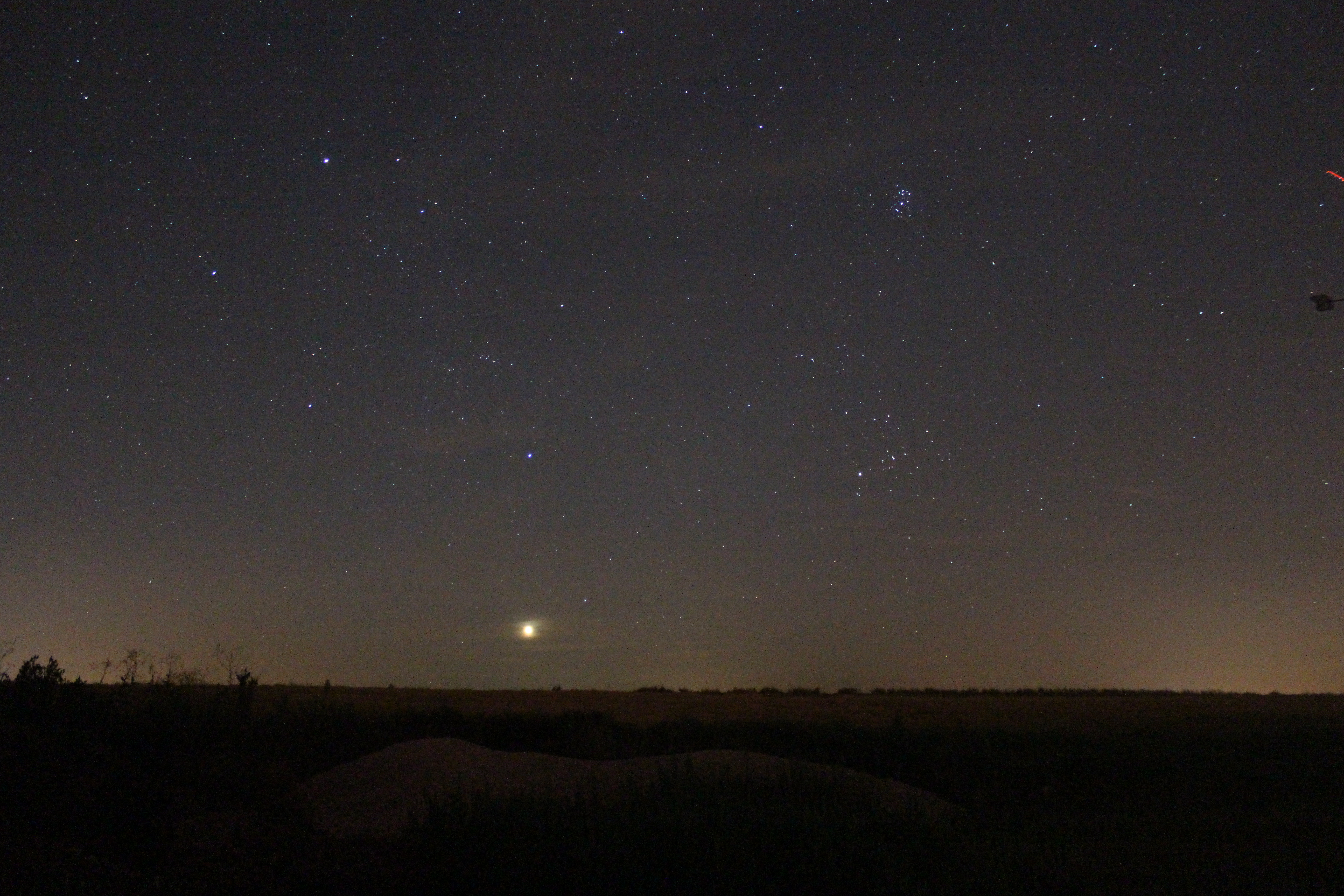 Venus im Sternbild Stier, aufgenommen in der Nähe der Windkraftanlage von Ingersheim.