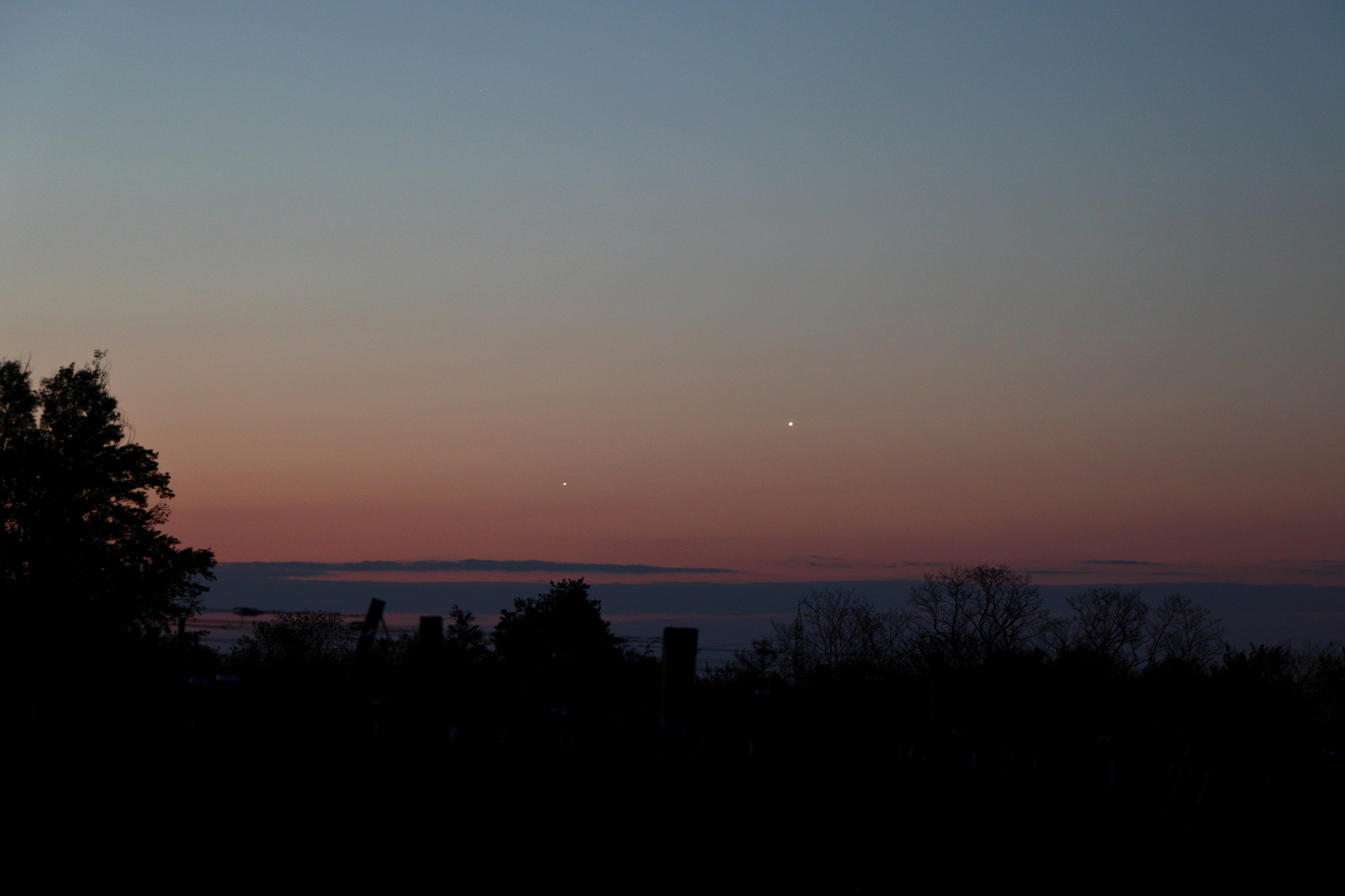 Der Abstand der beiden Planeten war etwas mehr als eine Daumenbreite in der Weite des ausgestreckten Arms (2,5 Grad).