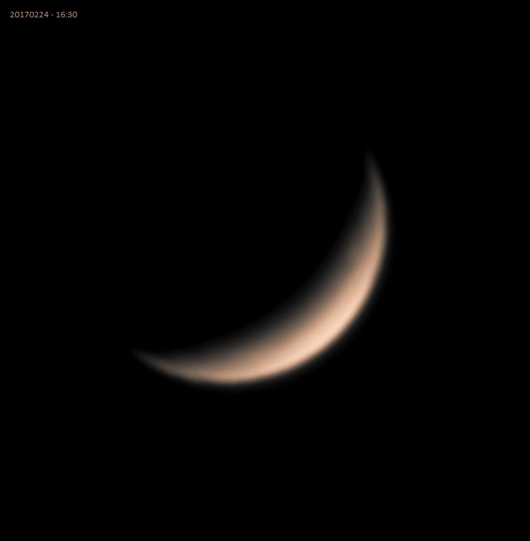 Plötzlich klarte es gegen 16 Uhr bei mir auf. Da meine Speichersternwarte nach Süden ausgerichtet ist, musste ich Venus am Nachmittag mit dem Fernglas orten. Klappte... etwa 50 Grad hoch und leicht Süd-Südwest. Zeit genug für einige AVIs, dann näherte sich das Rohr dem Veluxrahmen. Feierabend!
