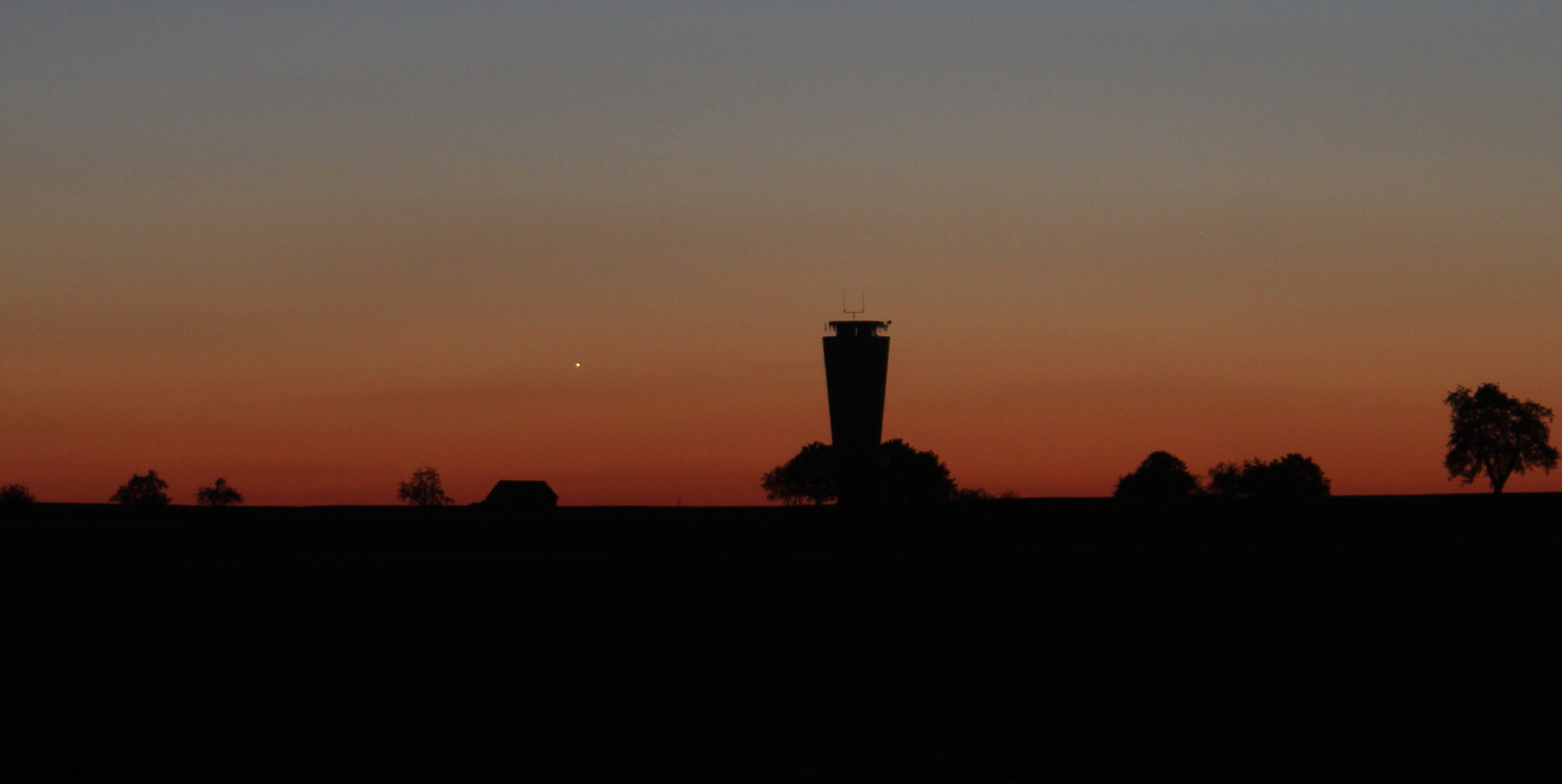 Venus in der Abenddämmerung neben dem Wasserturm von Altdorf im Landkreis Böblingen.