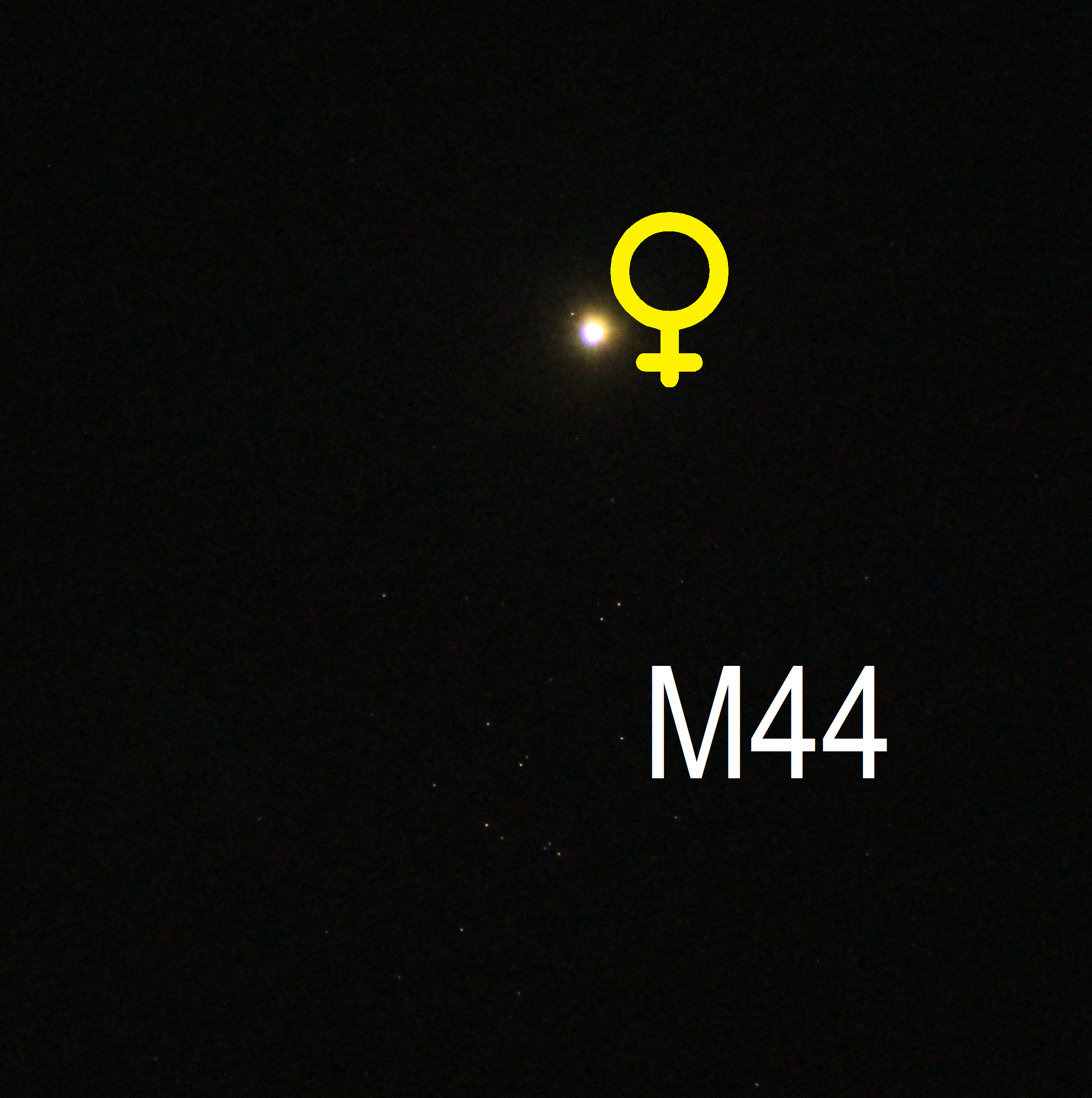 Leserbilder Astronomie: Venus in Konjunktion mit M44 (Objekte beschriftet)