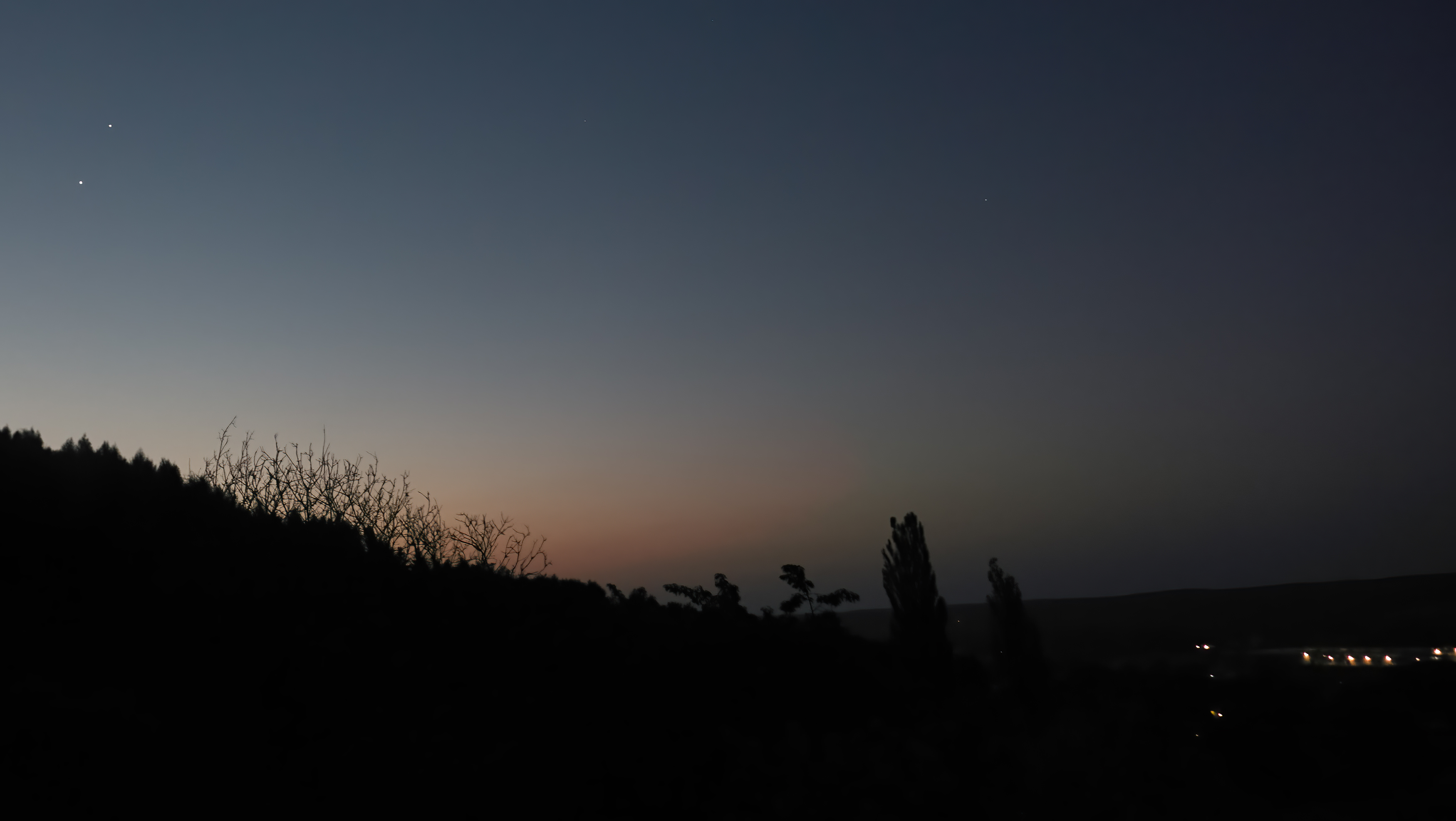Aufgenommen frühmorgens vom heimischen Balkon - Jupiter und Venus sowie ein paar helle Sterne, glaube vom Orion, gemeinschaftlich im Bild.