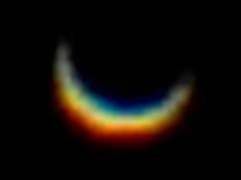 Tief am Horizont erschien die liegende Venus-Sichel bunt - ein Effekt der atmosphärischen Dispersion und kein Fehler der Optik!